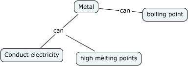 This Concept Map, created with IHMC CmapTools, has information related to: name_draft1, Metal can high melting points, Metal can boiling point, Metal can Conduct electricity