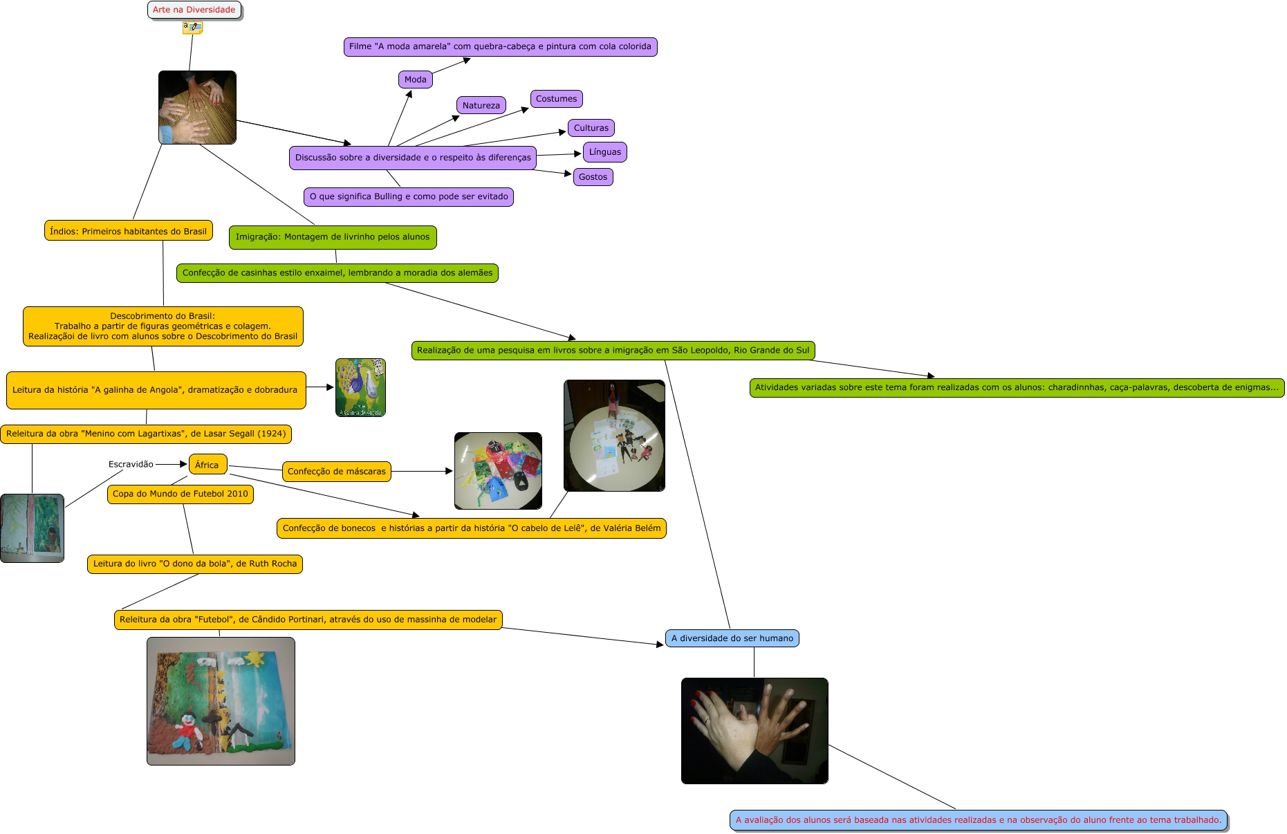 Esse mapa conceitual, produzido no IHMC CmapTools, tem a informação relacionada a: Objeto de Aprendizagem, A diversidade do ser humano ????, Descobrimento do Brasil: Trabalho a partir de figuras geométricas e colagem. Realizaçãoi de livro com alunos sobre o Descobrimento do Brasil ???? Leitura da história "A galinha de Angola", dramatização e dobradura, Confecção de casinhas estilo enxaimel, lembrando a moradia dos alemães ???? Realização de uma pesquisa em livros sobre a imigração em São Leopoldo, Rio Grande do Sul, Discussão sobre a diversidade e o respeito às diferenças ???? Culturas, ???? Imigração: Montagem de livrinho pelos alunos, Realização de uma pesquisa em livros sobre a imigração em São Leopoldo, Rio Grande do Sul ???? Atividades variadas sobre este tema foram realizadas com os alunos: charadinnhas, caça-palavras, descoberta de enigmas..., ???? A avaliação dos alunos será baseada nas atividades realizadas e na observação do aluno frente ao tema trabalhado., Confecção de bonecos e histórias a partir da história "O cabelo de Lelê", de Valéria Belém ???? ????, Índios: Primeiros habitantes do Brasil ???? Descobrimento do Brasil: Trabalho a partir de figuras geométricas e colagem. Realizaçãoi de livro com alunos sobre o Descobrimento do Brasil, Discussão sobre a diversidade e o respeito às diferenças ???? Gostos, Leitura do livro "O dono da bola", de Ruth Rocha ???? Releitura da obra "Futebol", de Cândido Portinari, através do uso de massinha de modelar, Copa do Mundo de Futebol 2010 ???? Leitura do livro "O dono da bola", de Ruth Rocha, África ???? Confecção de bonecos e histórias a partir da história "O cabelo de Lelê", de Valéria Belém, Discussão sobre a diversidade e o respeito às diferenças ???? Línguas, Moda ???? Filme "A moda amarela" com quebra-cabeça e pintura com cola colorida, Releitura da obra "Futebol", de Cândido Portinari, através do uso de massinha de modelar ???? A diversidade do ser humano, Realização de uma pesquisa em livros sobre a imigração em São Leopoldo, Rio Grande do Sul ???? A diversidade do ser humano, Arte na Diversidade ????, África ???? Confecção de máscaras, Imigração: Montagem de livrinho pelos alunos ???? ????