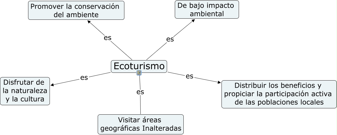 Este Cmap, tiene información relacionada con: Ecoturismo, Ecoturismo es Distribuir los beneficios y propiciar la participación activa de las poblaciones locales, Ecoturismo es De bajo impacto ambiental, Ecoturismo es Promover la conservación del ambiente, Ecoturismo es Disfrutar de la naturaleza y la cultura, Ecoturismo es Visitar áreas geográficas Inalteradas