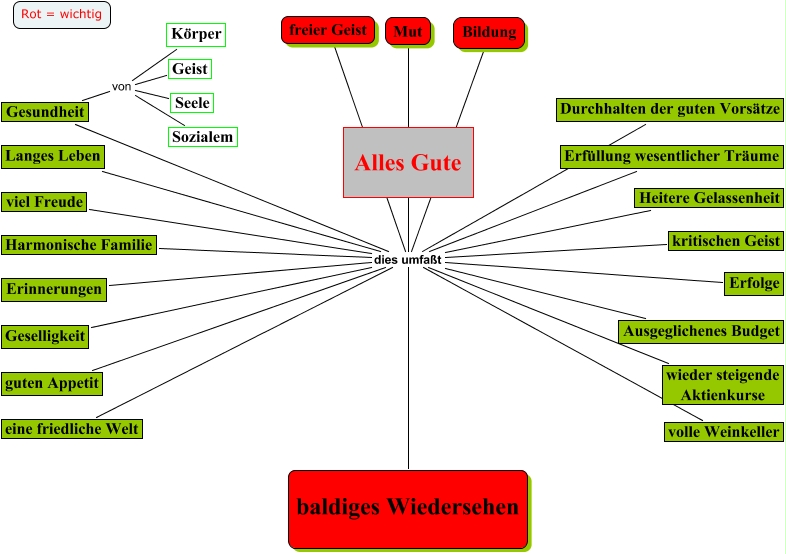 Dieses mit IHMC CmapTools erstellte CMap hat Informationen bezüglich: AllesGute, Alles Gute dies umfaßt volle Weinkeller, Alles Gute dies umfaßt Durchhalten der guten Vorsätze, Alles Gute dies umfaßt Harmonische Familie, Alles Gute dies umfaßt Erfüllung wesentlicher Träume, Alles Gute dies umfaßt Ausgeglichenes Budget, Alles Gute dies umfaßt Gesundheit, Alles Gute dies umfaßt viel Freude, Alles Gute dies umfaßt Erinnerungen, Alles Gute dies umfaßt freier Geist, Alles Gute dies umfaßt baldiges Wiedersehen, Gesundheit von Sozialem, Alles Gute dies umfaßt Mut, Gesundheit von Körper, Alles Gute dies umfaßt Bildung, Alles Gute dies umfaßt eine friedliche Welt, Alles Gute dies umfaßt kritischen Geist, Alles Gute dies umfaßt Heitere Gelassenheit, Alles Gute dies umfaßt Geselligkeit, Alles Gute dies umfaßt Erfolge, Gesundheit von Geist