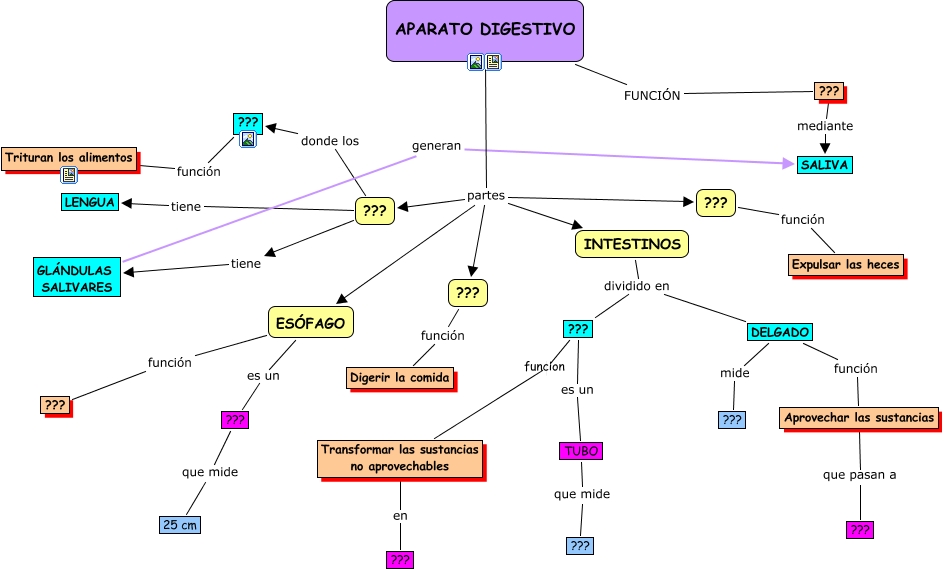 Este Cmap, tiene información relacionada con: Sin Título 1, ??? tiene LENGUA, APARATO DIGESTIVO FUNCIÓN ???, ??? función Trituran los alimentos, GLÁNDULAS SALIVARES generan SALIVA, APARATO DIGESTIVO partes ESÓFAGO, ??? mediante SALIVA, ESÓFAGO función ???, INTESTINOS dividido en DELGADO, TUBO que mide ???, DELGADO mide ???, ??? donde los ???, ??? es un TUBO, Aprovechar las sustancias que pasan a ???, APARATO DIGESTIVO partes INTESTINOS, DELGADO función Aprovechar las sustancias, APARATO DIGESTIVO partes ???, ??? función Digerir la comida, ??? que mide 25 cm, ESÓFAGO es un ???, ??? Transformar las sustancias no aprovechables