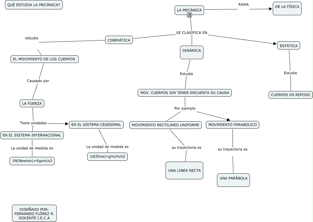 Este Cmap, tiene información relacionada con: MECÁNICA, MOVIMIENTO PARABOLICO su trayectoria es UNA PARÁBOLA, MOVIMIENTO RECTILINEO UNIFORME su trayectoria es UNA LINEA RECTA, EN EL SISTEMA INTERNACIONAL La unidad de medida es 1N(Newton)=Kgxm/s2, CINEMÁTICA SE CLASIFICA EN LA MECÁNICA, DINÁMICA Estudia MOV. CUERPOS SIN TENER ENCUENTA SU CAUSA, CINEMÁTICA SE CLASIFICA EN DINÁMICA, MOV. CUERPOS SIN TENER ENCUENTA SU CAUSA Por ejemplo MOVIMIENTO PARABOLICO, LA FUERZA Tiene unidades EN EL SISTEMA INTERNACIONAL, CINEMÁTICA SE CLASIFICA EN ESTÁTICA, EN EL SISTEMA CEGESIMAL La unidad de medida es 1d(Dina)=grxcm/s2, CINEMÁTICA estudia EL MOVIMIENTO DE LOS CUERPOS, LA MECÁNICA RAMA DE LA FÍSICA, ESTÁTICA Estudia CUERPOS EN REPOSO, LA FUERZA Tiene unidades EN EL SISTEMA CEGESIMAL, EL MOVIMIENTO DE LOS CUERPOS Causado por LA FUERZA, MOV. CUERPOS SIN TENER ENCUENTA SU CAUSA Por ejemplo MOVIMIENTO RECTILINEO UNIFORME