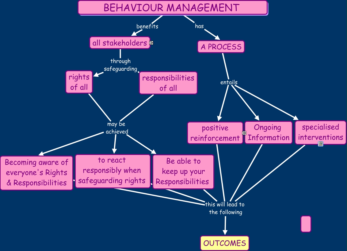 This Concept Map, created with IHMC CmapTools, has information related to: Sirens - BM, BEHAVIOUR MANAGEMENT benefits all stakeholders, positive reinforcements are recognised through Encouragement, Ongoing Information this will lead to the following OUTCOMES, positive reinforcements are recognised through realistic targets, BEHAVIOUR MANAGEMENT has A PROCESS, all stakeholders through safeguarding rights of all, positive reinforcements are recognised through Verbal Praise, A PROCESS entails specialised interventions, Becoming aware of everyone's Rights & Responsibilities this will lead to the following OUTCOMES, positive reinforcement this will lead to the following OUTCOMES, positive reinforcements are recognised through celebrating achievements, rights of all may be achieved to react responsibly when safeguarding rights, responsibilities of all may be achieved Becoming aware of everyone's Rights & Responsibilities, rights of all may be achieved Be able to keep up your Responsibilities, positive reinforcements are recognised through Recognizing efforts, all stakeholders include players, A PROCESS entails Ongoing Information, all stakeholders include parents, specialised interventions this will lead to the following OUTCOMES, responsibilities of all may be achieved to react responsibly when safeguarding rights