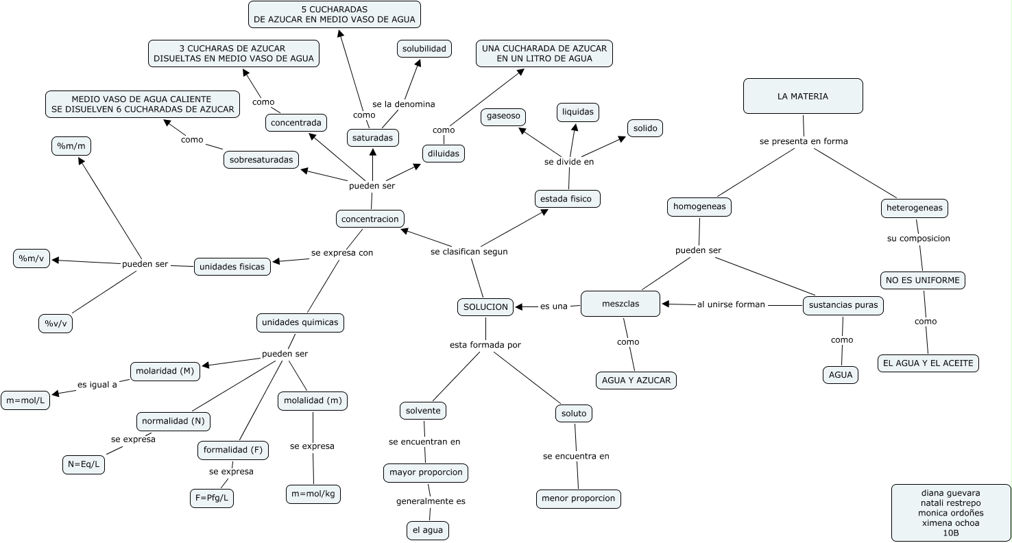 Este Cmap, tiene información relacionada con: LA MATERIA Y SUSTANCIAS, concentracion se expresa con unidades fisicas, concentrada como 3 CUCHARAS DE AZUCAR DISUELTAS EN MEDIO VASO DE AGUA, unidades quimicas pueden ser formalidad (F), SOLUCION esta formada por solvente, LA MATERIA se presenta en forma homogeneas, diluidas como UNA CUCHARADA DE AZUCAR EN UN LITRO DE AGUA, meszclas es una SOLUCION, molalidad (m) se expresa m=mol/kg, concentracion pueden ser saturadas, molaridad (M) es igual a m=mol/L, concentracion se expresa con unidades quimicas, mayor proporcion generalmente es el agua, LA MATERIA se presenta en forma heterogeneas, unidades fisicas pueden ser %m/m, heterogeneas su composicion NO ES UNIFORME, unidades fisicas pueden ser %v/v, sustancias puras como AGUA, estada fisico se divide en solido, sustancias puras al unirse forman meszclas, unidades quimicas pueden ser molaridad (M)