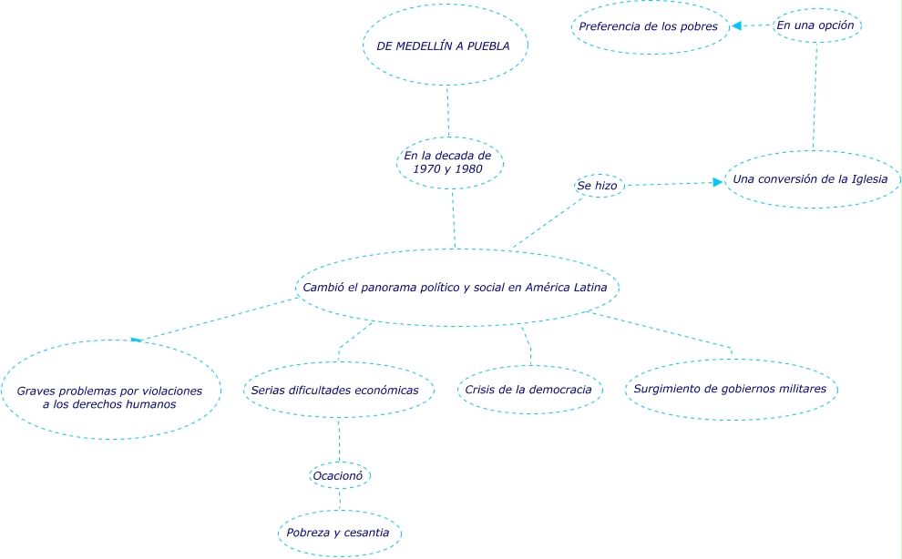Este Cmap, tiene información relacionada con: De Medellín a Puebla, Una conversión de la Iglesia En una opción Preferencia de los pobres, Cambió el panorama político y social en América Latina ???? Serias dificultades económicas, Cambió el panorama político y social en América Latina ???? Graves problemas por violaciones a los derechos humanos, Cambió el panorama político y social en América Latina ???? Crisis de la democracia, Cambió el panorama político y social en América Latina Se hizo Una conversión de la Iglesia, Serias dificultades económicas Ocacionó Pobreza y cesantia, Cambió el panorama político y social en América Latina ???? Surgimiento de gobiernos militares, DE MEDELLÍN A PUEBLA En la decada de 1970 y 1980 Cambió el panorama político y social en América Latina