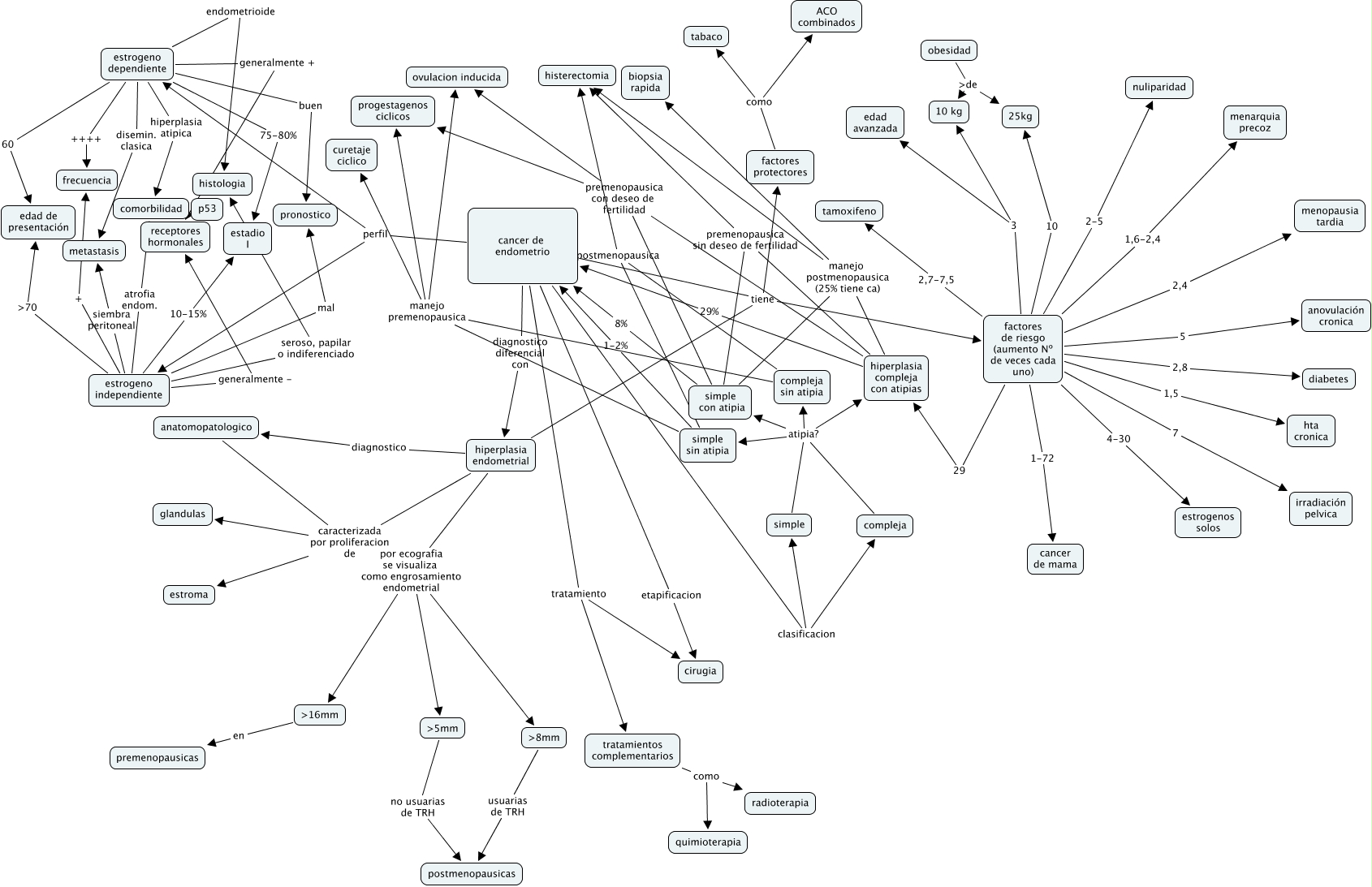 Este Cmap, tiene información relacionada con: cancer de endometrio, simple atipia? simple sin atipia, estrogeno independiente mal pronostico, simple atipia? hiperplasia compleja con atipias, ɱmm no usuarias de TRH postmenopausicas, cancer de endometrio tiene factores protectores, factores de riesgo (aumento Nº de veces cada uno) 7 irradiación pelvica, hiperplasia compleja con atipias 29% cancer de endometrio, hiperplasia endometrial caracterizada por proliferacion de estroma, obesidad >de 25kg, simple con atipia 8% cancer de endometrio, hiperplasia endometrial caracterizada por proliferacion de glandulas, factores de riesgo (aumento Nº de veces cada uno) 1-72 cancer de mama, estrogeno independiente atrofia endom. comorbilidad, cancer de endometrio diagnostico diferencial con hiperplasia endometrial, estrogeno dependiente 75-80% estadio I, cancer de endometrio tratamiento cirugia, cancer de endometrio perfil estrogeno independiente, factores protectores como ACO combinados, simple atipia? simple con atipia, factores de riesgo (aumento Nº de veces cada uno) 2-5 nuliparidad