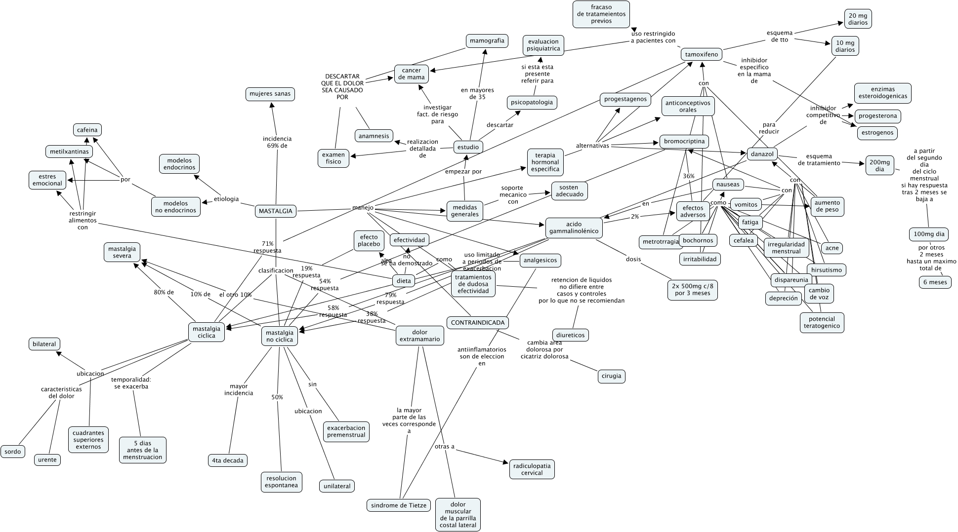 Este Cmap, tiene información relacionada con: mastalgia, mastalgia ciclica ubicacion bilateral, irritabilidad con tamoxifeno, efectos adversos como vomitos, nauseas en acido gammalinolénico, tratamientos de dudosa efectividad como dieta, efectos adversos como irritabilidad, MASTALGIA etiologia modelos no endocrinos, acne con danazol, efectos adversos como potencial teratogenico, nauseas con bromocriptina, estudio realizacion detallada de anamnesis, dieta alto efecto placebo, mastalgia ciclica 80% de mastalgia severa, dieta restringir alimentos con cafeina, efectos adversos como metrotrragia, efectos adversos como cefalea, efectos adversos como depreción, vomitos con bromocriptina, terapia hormonal especifica alternativas bromocriptina, MASTALGIA clasificacion dolor extramamario