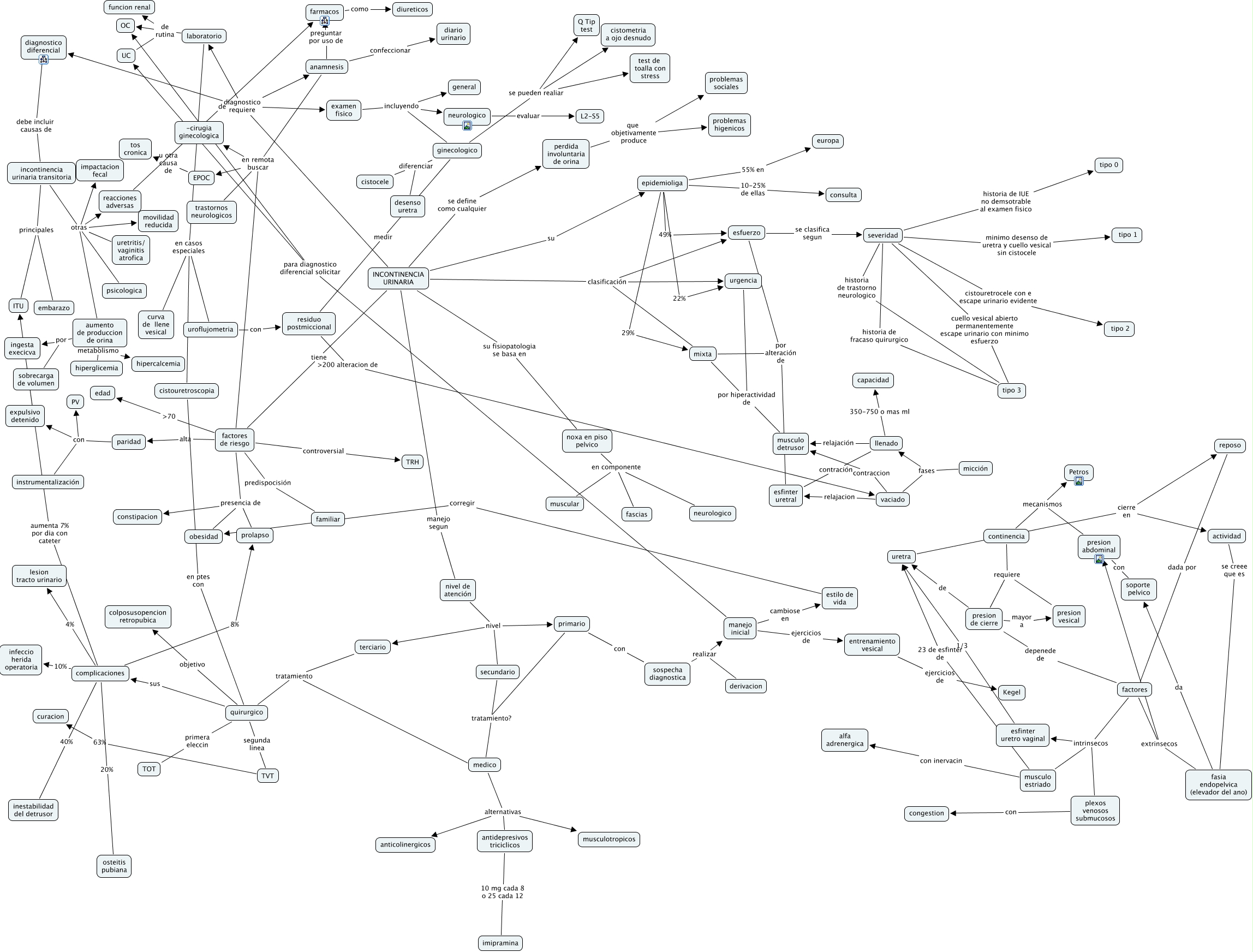 Este Cmap, tiene información relacionada con: incontinencia urinaria, quirurgico objetivo colposusopencion retropubica, manejo inicial para diagnostico diferencial solicitar OC, severidad historia de IUE no demsotrable al examen fisico tipo 0, factores intrinsecos esfinter uretro vaginal, severidad cuello vesical abierto permanentemente escape urinario con minimo esfuerzo tipo 3, llenado 350-750 o mas ml capacidad, laboratorio en casos especiales cistouretroscopia, examen fisico incluyendo neurologico, complicaciones 4% lesion tracto urinario, ginecologico se pueden realiar Q Tip test, noxa en piso pelvico en componente muscular, medico alternativas anticolinergicos, continencia mecanismos presion abdominal, perdida involuntaria de orina que objetivamente produce problemas sociales, llenado relajación musculo detrusor, vaciado contraccion musculo detrusor, INCONTINENCIA URINARIA clasificación mixta, primario tratamiento? medico, factores intrinsecos musculo estriado, INCONTINENCIA URINARIA diagnostico requiere examen fisico