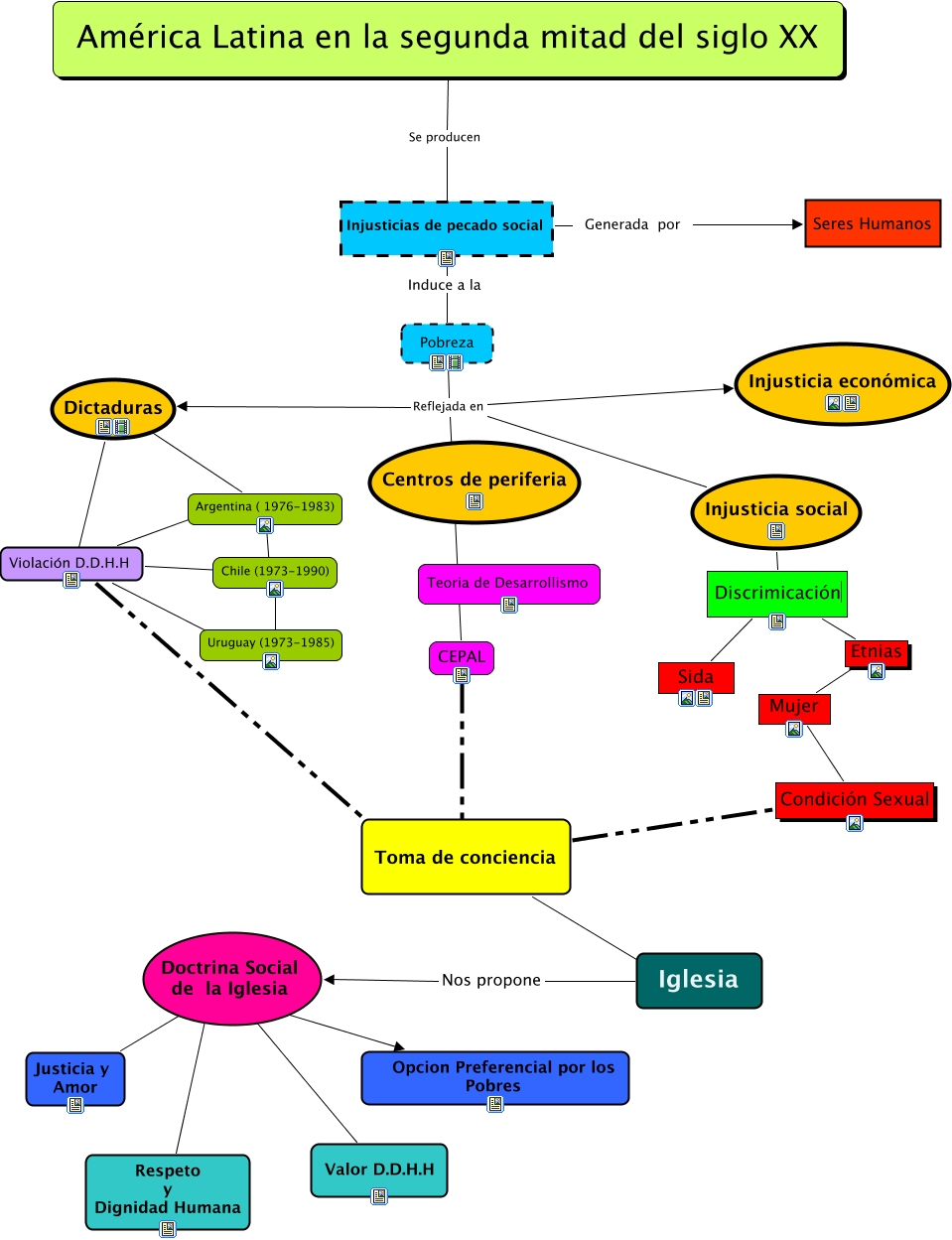 Este Cmap, tiene información relacionada con: Mapa general, Injusticia social Reflejada en Dictaduras, Injusticia social Discrimicación Sida, Dictaduras ???? Violación D.D.H.H, Violación D.D.H.H ???? Argentina ( 1976-1983), Violación D.D.H.H ???? Uruguay (1973-1985), Violación D.D.H.H ???? Toma de conciencia, Argentina ( 1976-1983) ???? Chile (1973-1990), América Latina en la segunda mitad del siglo XX Se producen Injusticias de pecado social, Injusticias de pecado social Generada por Seres Humanos, Etnias Mujer Condición Sexual, Chile (1973-1990) ???? Uruguay (1973-1985), Pobreza Reflejada en Dictaduras, Injusticia social Discrimicación Etnias, Violación D.D.H.H ???? Chile (1973-1990), CEPAL ???? Toma de conciencia, Toma de conciencia ???? Iglesia, Iglesia Nos propone Doctrina Social de la Iglesia, Justicia y Amor ???? Doctrina Social de la Iglesia, Valor D.D.H.H ???? Doctrina Social de la Iglesia, Injusticias de pecado social Induce a la Pobreza