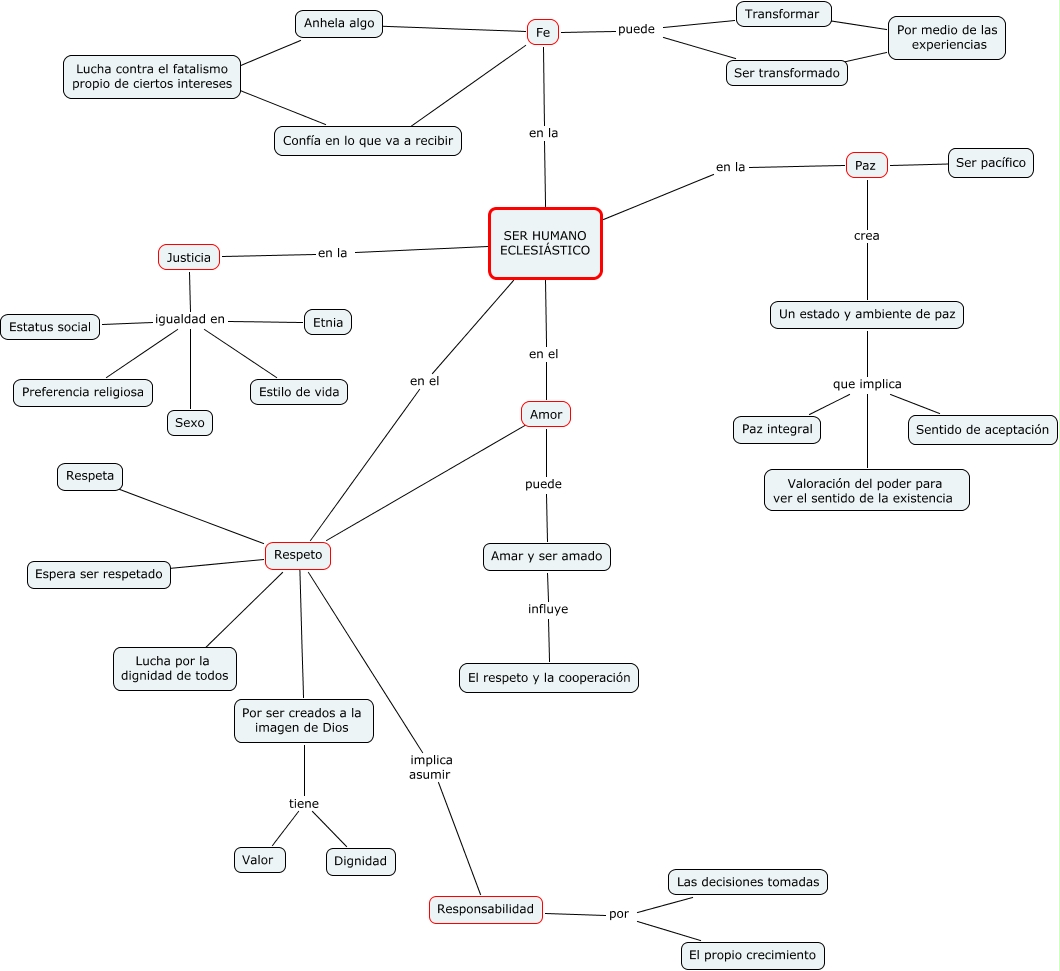 Este Cmap, tiene información relacionada con: ser humano eclesiastico, Amor ???? Respeto, SER HUMANO ECLESIÁSTICO en la Paz, Respeto implica asumir Responsabilidad, SER HUMANO ECLESIÁSTICO en la Fe, Ser transformado ???? Por medio de las experiencias, Respeto ???? Espera ser respetado, Justicia igualdad en Etnia, Por ser creados a la imagen de Dios tiene Valor, Anhela algo ???? Lucha contra el fatalismo propio de ciertos intereses, SER HUMANO ECLESIÁSTICO en la Justicia, Un estado y ambiente de paz que implica Sentido de aceptación, Justicia igualdad en Sexo, Justicia igualdad en Estilo de vida, Paz ???? Ser pacífico, Fe puede Transformar, Fe ???? Confía en lo que va a recibir, Responsabilidad por El propio crecimiento, Paz crea Un estado y ambiente de paz, Justicia igualdad en Estatus social, Por ser creados a la imagen de Dios tiene Dignidad