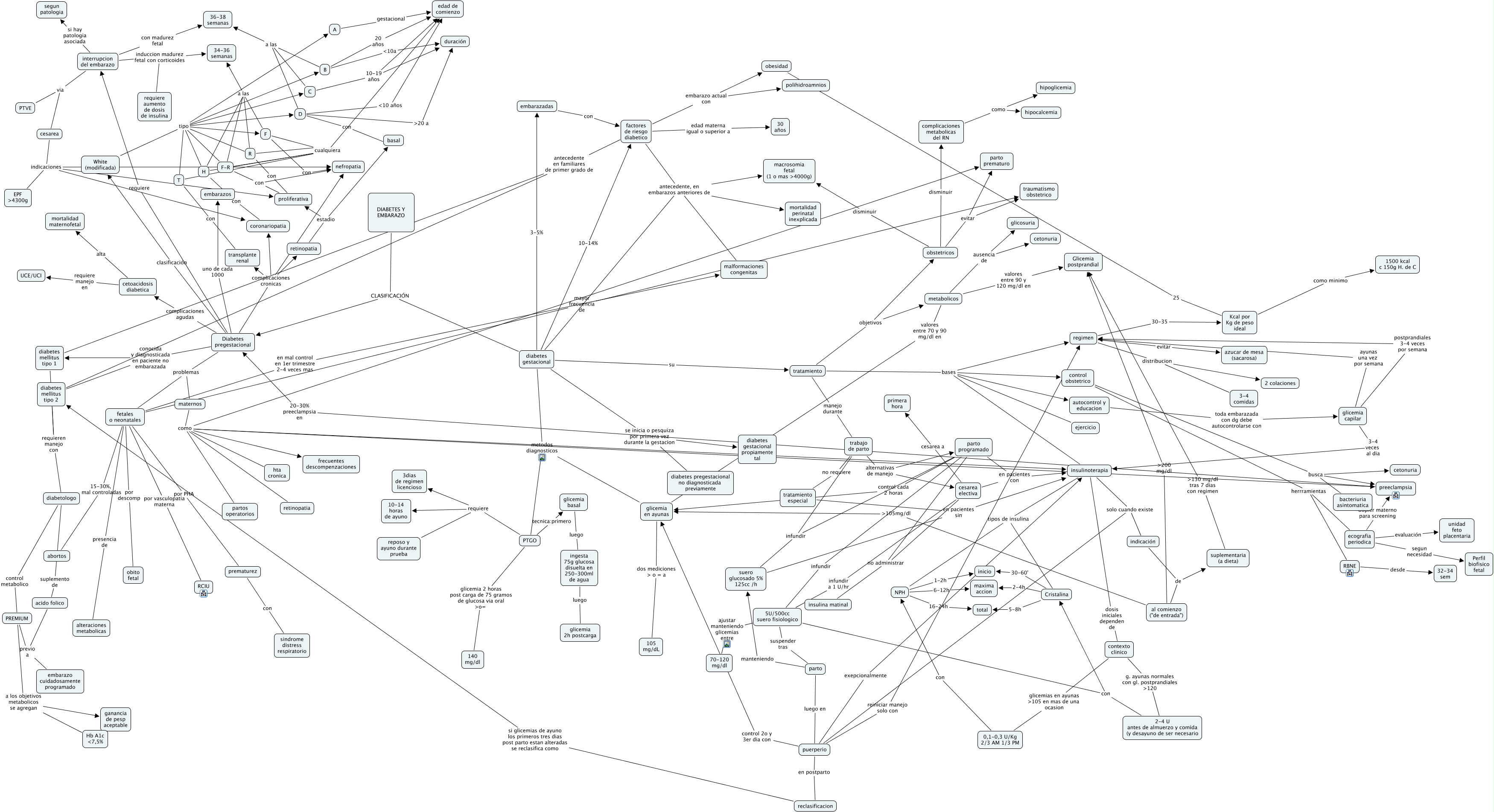 Este Cmap, tiene información relacionada con: diabetes y embarazo, tratamiento bases autocontrol y educacion, interrupcion del embarazo induccion madurez fetal con corticoides 34-36 semanas, factores de riesgo diabetico antecedente, en embarazos anteriores de macrosomia fetal (1 o mas g), 0,1-0,3 U/Kg 2/3 AM 1/3 PM con NPH, tratamiento objetivos obstetricos, Diabetes pregestacional conocida y diagnosticada en paciente no embarazada diabetes mellitus tipo 1, H cualquiera edad de comienzo, control obstetrico busca cetonuria, Kcal por Kg de peso ideal como minimo 1500 kcal c 150g H. de C, interrupcion del embarazo via cesarea, factores de riesgo diabetico embarazo actual con obesidad, fetales o neonatales por descomp obito fetal, C a las 36-38 semanas, cesarea electiva infundir a 1 U/hr 5U/500cc suero fisiologico, 5U/500cc suero fisiologico ajustar manteniendo glicemias entre 70-120 mg/dl, C 10-19 años edad de comienzo, parto programado control cada 2 horas glicemia en ayunas, R a las 34-36 semanas, PREMIUM a los objetivos metabolicos se agregan ganancia de pesp aceptable, metabolicos valores entre 90 y 120 mg/dl en Glicemia postprandial