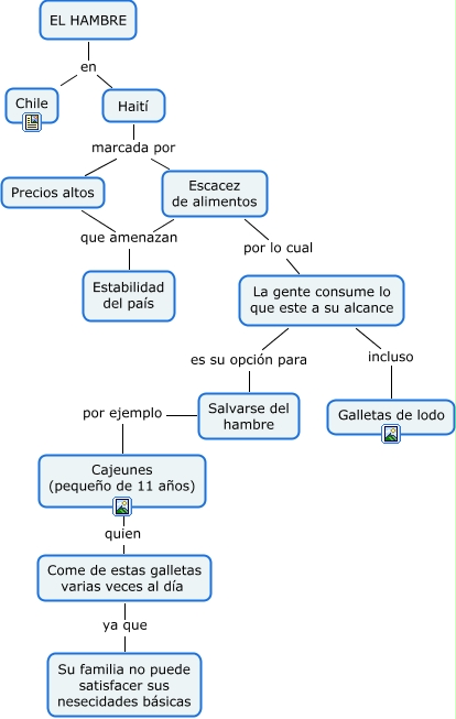 Este Cmap, tiene información relacionada con: hambre_izaa, La gente consume lo que este a su alcance es su opción para Salvarse del hambre, Escacez de alimentos que amenazan Estabilidad del país, La gente consume lo que este a su alcance incluso Galletas de lodo, EL HAMBRE en Chile, EL HAMBRE en Haití, Precios altos que amenazan Estabilidad del país, Cajeunes (pequeño de 11 años) quien Come de estas galletas varias veces al día, Salvarse del hambre por ejemplo Cajeunes (pequeño de 11 años), Escacez de alimentos por lo cual La gente consume lo que este a su alcance, Come de estas galletas varias veces al día ya que Su familia no puede satisfacer sus nesecidades básicas