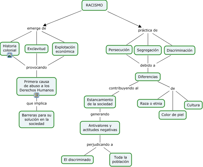 Este Cmap, tiene información relacionada con: racismo_shimi, Historia colonial provocando Primera causa de abuso a los Derechos Humanos, Exclavitud provocando Primera causa de abuso a los Derechos Humanos, Diferencias de Color de piel, Antivalores y actitudes negativas perjudicando a Toda la población, RACISMO emerge de Historia colonial, RACISMO práctica de Persecución, Discriminación debido a Diferencias, Persecución debido a Diferencias, Diferencias contribuyendo al Estancamiento de la sociedad, RACISMO práctica de Segregación, Segregación debido a Diferencias, RACISMO emerge de Exclavitud, Explotación económica provocando Primera causa de abuso a los Derechos Humanos, Diferencias de Raza o etnia, Diferencias de Cultura, RACISMO práctica de Discriminación, RACISMO emerge de Explotación económica, Primera causa de abuso a los Derechos Humanos que implica Barreras para su solución en la sociedad, Antivalores y actitudes negativas perjudicando a El discriminado, Estancamiento de la sociedad generando Antivalores y actitudes negativas