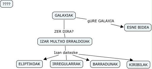 Este Cmap, tiene información relacionada con: Galaxien inguruko kontzeptu mapa - froga, IZAR MULTXO ERRALDOIAK Izan daitezke BARRADUNAK, IZAR MULTXO ERRALDOIAK Izan daitezke IRREGULARRAK, GALAXIAK gURE GALAXIA ESNE BIDEA, IZAR MULTXO ERRALDOIAK Izan daitezke KIRIBILAK, GALAXIAK ZER DIRA? IZAR MULTXO ERRALDOIAK, IZAR MULTXO ERRALDOIAK Izan daitezke ELIPTIKOAK