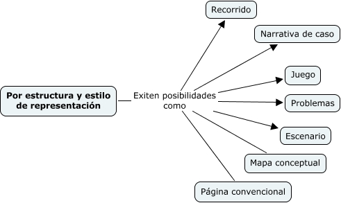 Este Cmap, tiene información relacionada con: 2.2 Estrutura y estilo, Por estructura y estilo de representación Exiten posibilidades como Mapa conceptual, Por estructura y estilo de representación Exiten posibilidades como Recorrido, Por estructura y estilo de representación Exiten posibilidades como Juego, Por estructura y estilo de representación Exiten posibilidades como Escenario, Por estructura y estilo de representación Exiten posibilidades como Narrativa de caso, Por estructura y estilo de representación Exiten posibilidades como Problemas, Por estructura y estilo de representación Exiten posibilidades como Página convencional