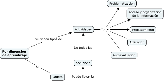 Este Cmap, tiene información relacionada con: 2.3 Dimensión de aprendizaje, Actividades Como Problematización, Actividades Como Autoevaluación, Actividades Como Acceso y organización de la información, Por dimensión de aprendizaje Se tienen tipos de Actividades, Actividades Como Aplicación, Por dimensión de aprendizaje Un Objeto, Objeto Puede llevar la secuencia, Actividades Como Procesamiento, secuencia De todas las Actividades
