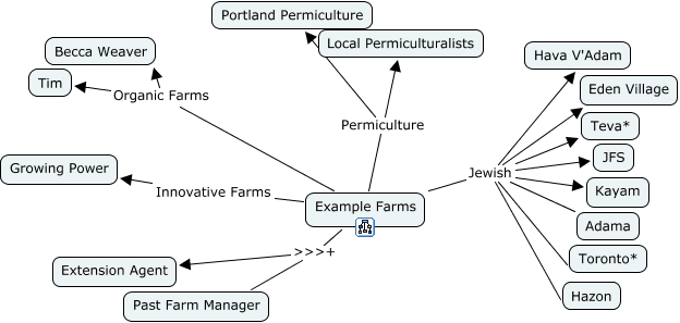 This Concept Map, created with IHMC CmapTools, has information related to: Example Farms, Example Farms Jewish Hava V'Adam, Example Farms Permiculture Local Permiculturalists, Example Farms Jewish JFS, Example Farms >>>+ Past Farm Manager, Example Farms Jewish Toronto*, Example Farms Jewish Adama, Example Farms Jewish Kayam, Example Farms Jewish Teva*, Example Farms Organic Farms Becca Weaver, Example Farms Organic Farms Tim, Example Farms Jewish Hazon, Example Farms >>>+ Extension Agent, Example Farms Innovative Farms Growing Power, Example Farms Permiculture Portland Permiculture, Example Farms Jewish Eden Village