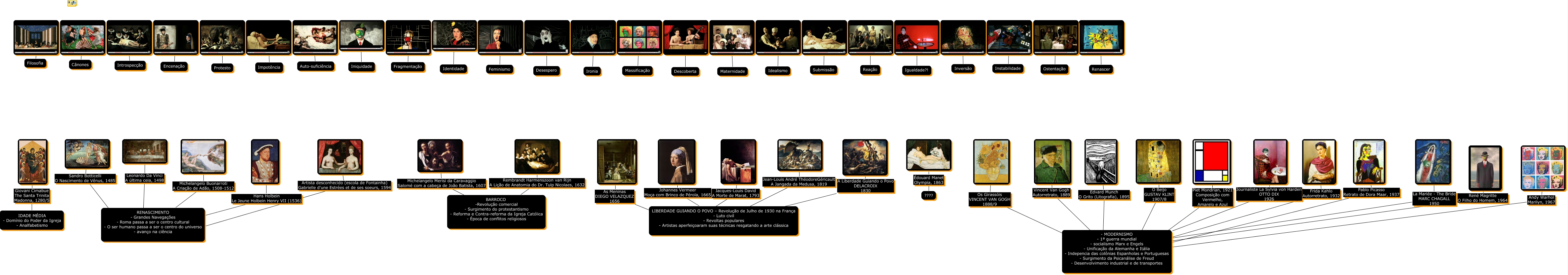 Esse mapa conceitual, produzido no IHMC CmapTools, tem a informação relacionada a: 70 Million, ???? Identidade, A Liberdade Guiando o Povo DELACROIX 1830 ????, La Mariée - The Bride MARC CHAGALL 1950 ????, Édouard Manet Olympia, 1863 ????, ???? Massificação, Hans Holbein Le Jeune Holbein Henry VII (1536) ????, ???? Descoberta, ???? Ostentação, ???? Renascer, ???? Submissão, Vincent Van Gogh Autorretrato, 1889 ????, Jean-Louis André ThéodoreGéricault A Jangada da Medusa, 1819 ????, Andy Warhol Marilyn, 1967 ????, O Beijo GUSTAV KLINT 1907/8 ????, Piet Mondrian, 1921 Composição com Vermelho, Amarelo e Azul ????, ???? Ironia, As Meninas DIEGO VELAZQUEZ 1656 ????, ???? Idealismo, ???? Encenação, ???? Igualdade?!