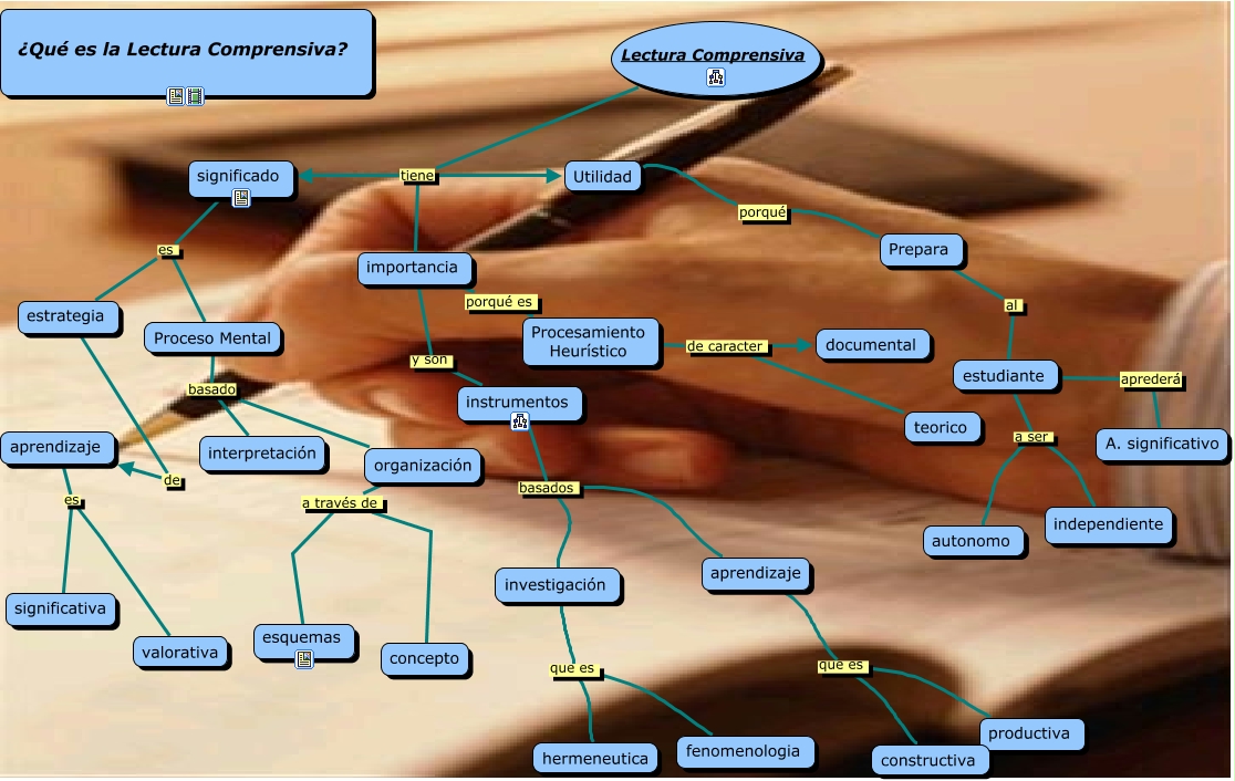 Este Cmap, tiene información relacionada con: lectura comprensiva, instrumentos basados investigación, significado es estrategia, investigación que es fenomenologia, organización a través de concepto, Procesamiento Heurístico de caracter teorico, estrategia de aprendizaje, estudiante a ser autonomo, importancia y son instrumentos, aprendizaje es valorativa, Proceso Mental basado interpretación, significado es Proceso Mental, aprendizaje que es productiva, Proceso Mental basado organización, Prepara al estudiante, Procesamiento Heurístico de caracter documental, organización a través de esquemas, Utilidad porqué Prepara, importancia porqué es Procesamiento Heurístico, aprendizaje que es constructiva, estudiante aprederá A. significativo