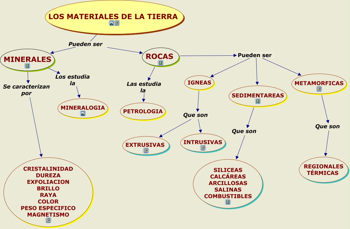 Este Cmap, tiene información relacionada con: Rocas y minerales, ROCAS Las estudia la PETROLOGIA, IGNEAS Que son INTRUSIVAS, MINERALES Los estudia la MINERALOGIA, IGNEAS Que son EXTRUSIVAS, MINERALES Se caracterizan por CRISTALINIDAD DUREZA EXFOLIACION BRILLO RAYA COLOR PESO ESPECIFICO MAGNETISMO, LOS MATERIALES DE LA TIERRA Pueden ser MINERALES, METAMORFICAS Que son REGIONALES TÉRMICAS, ROCAS Pueden ser IGNEAS, ROCAS Pueden ser METAMORFICAS, LOS MATERIALES DE LA TIERRA Pueden ser ROCAS, ROCAS Pueden ser SEDIMENTAREAS, SEDIMENTAREAS Que son SILICEAS CALCÁREAS ARCILLOSAS SALINAS COMBUSTIBLES