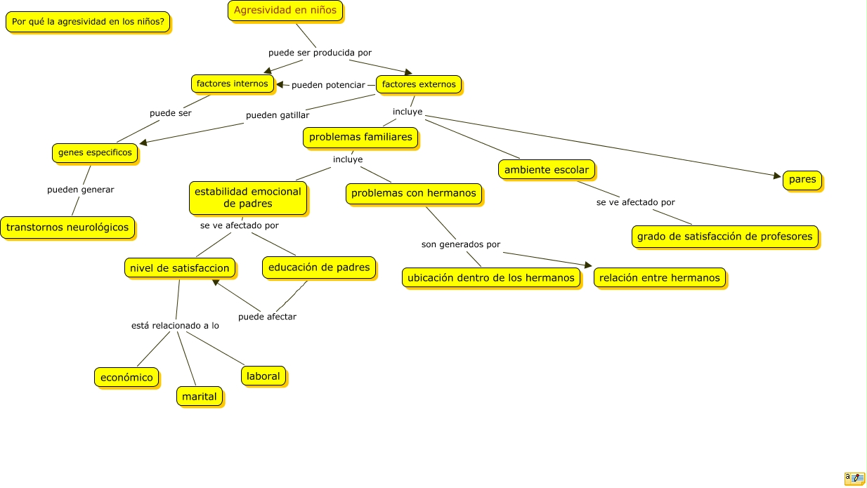 Este mapa conceptual tiene información relacionada a: Mapa Conceptual Laura Orge, estabilidad emocional de padres se ve afectado por nivel de satisfaccion, factores externos incluye pares, problemas con hermanos son generados por relación entre hermanos, factores externos incluye ambiente escolar, nivel de satisfaccion está relacionado a lo económico, genes especificos pueden generar transtornos neurológicos, problemas con hermanos son generados por ubicación dentro de los hermanos, nivel de satisfaccion está relacionado a lo marital, nivel de satisfaccion está relacionado a lo laboral, factores externos pueden potenciar factores internos