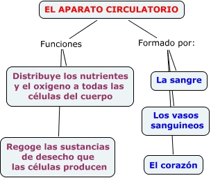 Este Cmap, tiene información relacionada con: El aparato circulatorio, EL APARATO CIRCULATORIO Funciones Distribuye los nutrientes y el oxigeno a todas las células del cuerpo, EL APARATO CIRCULATORIO Formado por: La sangre, EL APARATO CIRCULATORIO Formado por: Los vasos sanguineos, EL APARATO CIRCULATORIO Funciones Regoge las sustancias de desecho que las células producen, EL APARATO CIRCULATORIO Formado por: El corazón