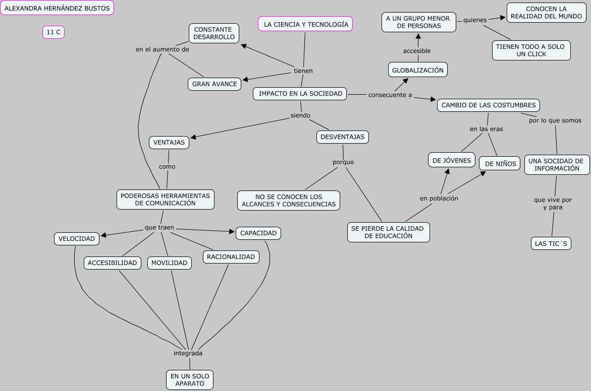 Este Cmap, tiene información relacionada con: TECNOLOGÍA Y SOCIEDAD.cmap, PODEROSAS HERRAMIENTAS DE COMUNICACIÓN que traen ACCESIBILIDAD, LA CIENCIA Y TECNOLOGÍA tienen CONSTANTE DESARROLLO, MOVILIDAD integrada EN UN SOLO APARATO, CAPACIDAD integrada EN UN SOLO APARATO, GLOBALIZACIÓN accesible A UN GRUPO MENOR DE PERSONAS, UNA SOCIDAD DE INFORMACIÓN que vive por y para LAS TIC´S, DESVENTAJAS porque SE PIERDE LA CALIDAD DE EDUCACIÓN, SE PIERDE LA CALIDAD DE EDUCACIÓN en población DE NIÑOS, IMPACTO EN LA SOCIEDAD siendo VENTAJAS, CAMBIO DE LAS COSTUMBRES por lo que somos UNA SOCIDAD DE INFORMACIÓN, DESVENTAJAS porque NO SE CONOCEN LOS ALCANCES Y CONSECUENCIAS, GRAN AVANCE en el aumento de PODEROSAS HERRAMIENTAS DE COMUNICACIÓN, LA CIENCIA Y TECNOLOGÍA tienen IMPACTO EN LA SOCIEDAD, PODEROSAS HERRAMIENTAS DE COMUNICACIÓN que traen RACIONALIDAD, IMPACTO EN LA SOCIEDAD consecuente a CAMBIO DE LAS COSTUMBRES, CAMBIO DE LAS COSTUMBRES en las eras DE JÓVENES, IMPACTO EN LA SOCIEDAD siendo DESVENTAJAS, RACIONALIDAD integrada EN UN SOLO APARATO, VENTAJAS como PODEROSAS HERRAMIENTAS DE COMUNICACIÓN, A UN GRUPO MENOR DE PERSONAS quienes TIENEN TODO A SOLO UN CLICK
