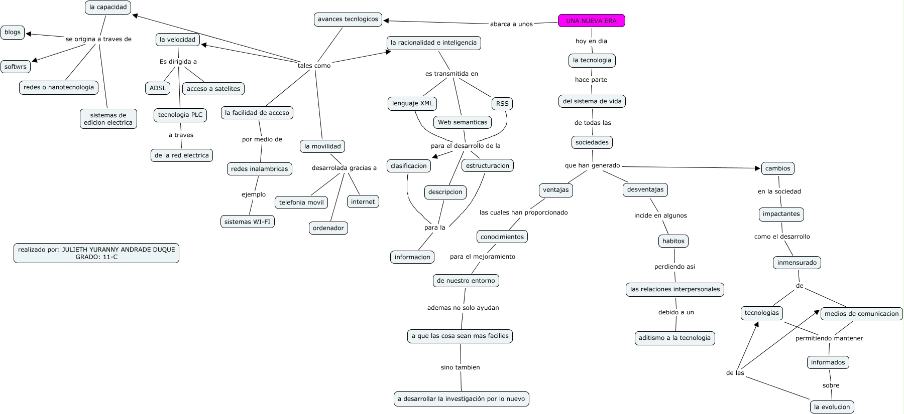 Este Cmap, tiene información relacionada con: JULIETH ANDRADE INFOR, sociedades que han generado ventajas, tecnologia PLC a traves de la red electrica, impactantes como el desarrollo inmensurado, Web semanticas para el desarrollo de la clasificacion, lenguaje XML para el desarrollo de la descripcion, clasificacion para la informacion, sociedades que han generado desventajas, la capacidad se origina a traves de blogs, RSS para el desarrollo de la descripcion, lenguaje XML para el desarrollo de la clasificacion, descripcion para la informacion, lenguaje XML para el desarrollo de la estructuracion, avances tecnlogicos tales como la movilidad, la movilidad desarrolada gracias a ordenador, la movilidad desarrolada gracias a internet, inmensurado de tecnologias, UNA NUEVA ERA abarca a unos avances tecnlogicos, la velocidad Es dirigida a acceso a satelites, RSS para el desarrollo de la clasificacion, Web semanticas para el desarrollo de la descripcion
