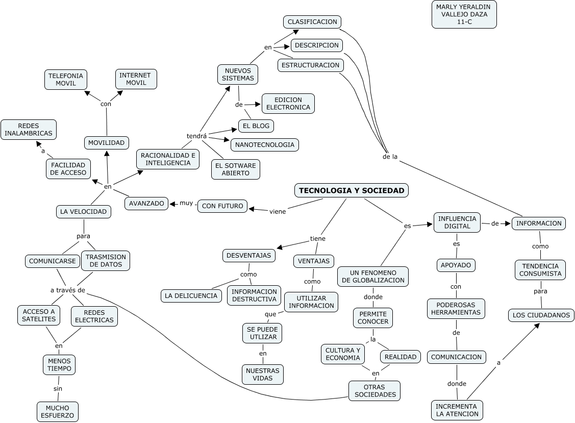 Este Cmap, tiene información relacionada con: TECNOLOGIA Y SOCIEDAD yeraldin vallejo daza, NUEVOS SISTEMAS en DESCRIPCION, PERMITE CONOCER la CULTURA Y ECONOMIA, MOVILIDAD con INTERNET MOVIL, PODEROSAS HERRAMIENTAS de COMUNICACION, ESTRUCTURACION de la INFORMACION, CLASIFICACION de la INFORMACION, AVANZADO en FACILIDAD DE ACCESO, INCREMENTA LA ATENCION a LOS CIUDADANOS, INFORMACION como TENDENCIA CONSUMISTA, DESVENTAJAS como INFORMACION DESTRUCTIVA, TECNOLOGIA Y SOCIEDAD tiene DESVENTAJAS, UTILIZAR INFORMACION que SE PUEDE UTLIZAR, ACCESO A SATELITES en MENOS TIEMPO, TECNOLOGIA Y SOCIEDAD es UN FENOMENO DE GLOBALIZACION, COMUNICARSE a través de ACCESO A SATELITES, FACILIDAD DE ACCESO a REDES INALAMBRICAS, CULTURA Y ECONOMIA en OTRAS SOCIEDADES, UN FENOMENO DE GLOBALIZACION donde PERMITE CONOCER, NUEVOS SISTEMAS de EDICION ELECTRONICA, COMUNICACION donde INCREMENTA LA ATENCION