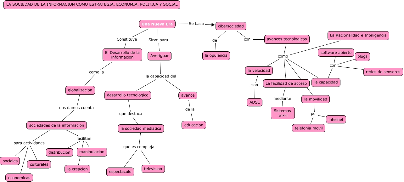 Este Cmap, tiene información relacionada con: una nueva era, sociedades de la informacion facilitan la creacion, sociedades de la informacion facilitan distribucion, la sociedad mediatica que es compleja television, Averiguar la capacidad del avance, sociedades de la informacion para actividades sociales, la velocidad son ADSL, Una Nueva Era Se basa cibersociedad, avances tecnologicos como la movilidad, sociedades de la informacion para actividades culturales, la capacidad con software abierto, la capacidad con redes de sensores, cibersociedad de la opulencia, la sociedad mediatica que es compleja espectaculo, avances tecnologicos como La Racionalidad e Inteligencia, cibersociedad con avances tecnologicos, La facilidad de acceso mediante Sistemas wi-Fi, avances tecnologicos como la capacidad, El Desarrollo de la informacion como la globalizacion, avance de la educacion, Una Nueva Era Sirve para Averiguar