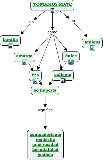 Este Cmap, tiene información relacionada con: clase 3 el mate, TOMAMOS MATE con amigos, no importa compañerismo modestia generosidad hospitalidad justicia, TOMAMOS MATE en familia, TOMAMOS MATE como caliente, TOMAMOS MATE como frío, TOMAMOS MATE como amargo, amargo ???? no importa, dulce ???? no importa, TOMAMOS MATE como dulce, no importa significa compañerismo modestia generosidad hospitalidad justicia