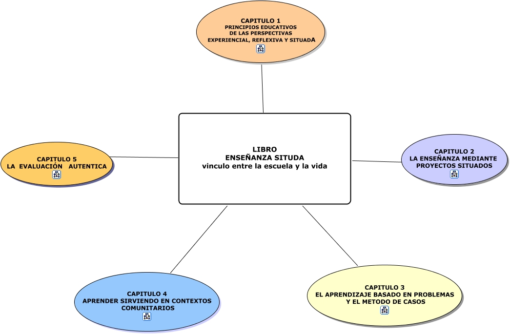 Este Cmap, tiene información relacionada con: CAPITULOS, LIBRO ENSEÑANZA SITUDA vinculo entre la escuela y la vida ???? CAPITULO 4 APRENDER SIRVIENDO EN CONTEXTOS COMUNITARIOS, LIBRO ENSEÑANZA SITUDA vinculo entre la escuela y la vida ???? CAPITULO 1 PRINCIPIOS EDUCATIVOS DE LAS PERSPECTIVAS EXPERIENCIAL, REFLEXIVA Y SITUADA, LIBRO ENSEÑANZA SITUDA vinculo entre la escuela y la vida ???? CAPITULO 5 LA EVALUACIÓN AUTENTICA, LIBRO ENSEÑANZA SITUDA vinculo entre la escuela y la vida ???? CAPITULO 2 LA ENSEÑANZA MEDIANTE PROYECTOS SITUADOS, LIBRO ENSEÑANZA SITUDA vinculo entre la escuela y la vida ???? CAPITULO 3 EL APRENDIZAJE BASADO EN PROBLEMAS Y EL METODO DE CASOS