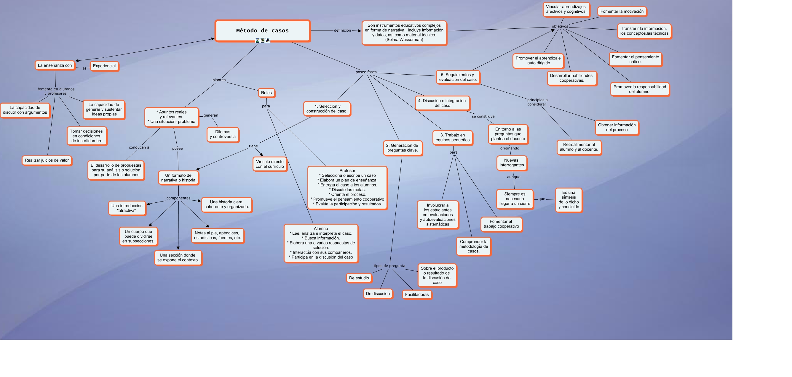 Este Cmap, tiene información relacionada con: Capítulo 3-b, En torno a las preguntas que plantea el docente originando Nuevas interrogantes, Son instrumentos educativos complejos en forma de narrativa. Incluye información y datos, así como material técnico. (Selma Wasserman) objetivos Promover el aprendizaje auto dirigido, 5. Seguimientos y evaluación del caso. principios a considerar Obtener información del proceso, Nuevas interrogantes aunque Siempre es necesario llegar a un cierre, 5. Seguimientos y evaluación del caso. objetivos Fomentar el pensamiento crítico., * Asuntos reales y relevantes. * Una situación- problema conducen a El desarrollo de propuestas para su análisis o solución por parte de los alumnos, Roles para Profesor * Selecciona o escribe un caso * Elabora un plan de enseñanza. * Entrega el caso a los alumnos. * Discute las metas. * Orienta el proceso. * Promueve el pensamiento cooperativo * Evalúa la participación y resultados., Un formato de narrativa o historia componentes Notas al pie, apéndices, estadísticas, fuentes, etc., Son instrumentos educativos complejos en forma de narrativa. Incluye información y datos, así como material técnico. (Selma Wasserman) objetivos Vincular aprendizajes afectivos y cognitivos., 5. Seguimientos y evaluación del caso. objetivos Promover la responsabilidad del alumno., Método de casos definición Son instrumentos educativos complejos en forma de narrativa. Incluye información y datos, así como material técnico. (Selma Wasserman), 5. Seguimientos y evaluación del caso. objetivos Fomentar la motivación, La enseñanza con fomenta en alumnos y profesores Tomar decisiones en condiciones de incertidumbre, 2. Generación de preguntas clave. tipos de pregunta Facilitadoras, Siempre es necesario llegar a un cierre que Es una síntesis de lo dicho y concluido, Transferir la información, los conceptos,las técnicas objetivos Promover el aprendizaje auto dirigido, Transferir la información, los conceptos,las técnicas objetivos Fomentar el pensamiento crítico., 4. Discusión e integración del caso se construye En torno a las preguntas que plantea el docente, Transferir la información, los conceptos,las técnicas objetivos Desarrollar habilidades cooperativas., La enseñanza con es Experiencial