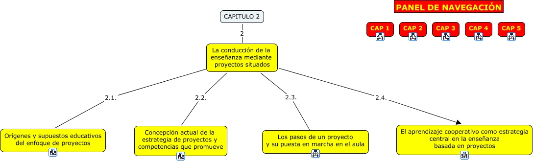 Este Cmap, tiene información relacionada con: Cap2, La conducción de la enseñanza mediante proyectos situados 2.3. Los pasos de un proyecto y su puesta en marcha en el aula, La conducción de la enseñanza mediante proyectos situados 2.1. Orígenes y supuestos educativos del enfoque de proyectos, CAPITULO 2 2 La conducción de la enseñanza mediante proyectos situados, La conducción de la enseñanza mediante proyectos situados 2.2. Concepción actual de la estrategia de proyectos y competencias que promueve, La conducción de la enseñanza mediante proyectos situados 2.4. El aprendizaje cooperativo como estrategia central en la enseñanza basada en proyectos