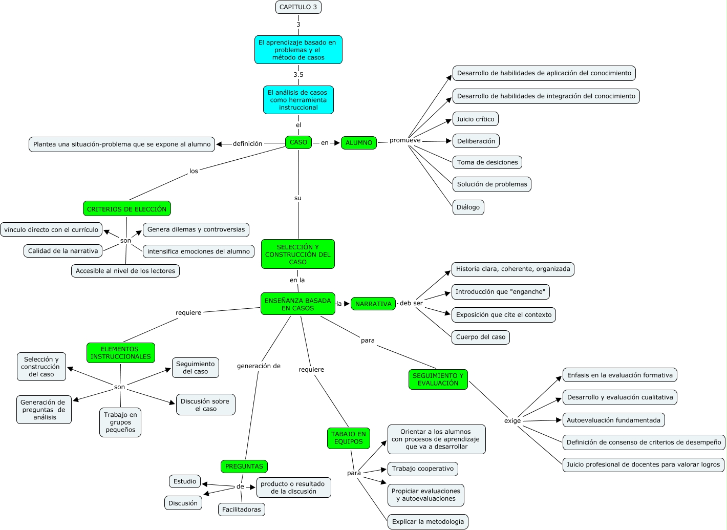 Este Cmap, tiene información relacionada con: 35, ALUMNO promueve Juicio crítico, ELEMENTOS INSTRUCCIONALES son Generación de preguntas de análisis, CASO su SELECCIÓN Y CONSTRUCCIÓN DEL CASO, ALUMNO promueve Toma de desiciones, CRITERIOS DE ELECCIÓN son Calidad de la narrativa, ALUMNO promueve Deliberación, NARRATIVA deb ser Exposición que cite el contexto, CASO definición Plantea una situación-problema que se expone al alumno, ENSEÑANZA BASADA EN CASOS requiere TABAJO EN EQUIPOS, SEGUIMIENTO Y EVALUACIÓN exige Juicio profesional de docentes para valorar logros, ELEMENTOS INSTRUCCIONALES son Trabajo en grupos pequeños, SEGUIMIENTO Y EVALUACIÓN exige Autoevaluación fundamentada, El aprendizaje basado en problemas y el método de casos 3.5 El análisis de casos como herramienta instruccional, El análisis de casos como herramienta instruccional el CASO, CRITERIOS DE ELECCIÓN son Accesible al nivel de los lectores, SEGUIMIENTO Y EVALUACIÓN exige Definición de consenso de criterios de desempeño, PREGUNTAS de Discusión, SELECCIÓN Y CONSTRUCCIÓN DEL CASO en la ENSEÑANZA BASADA EN CASOS, ELEMENTOS INSTRUCCIONALES son Selección y construcción del caso, NARRATIVA deb ser Introducción que "enganche"
