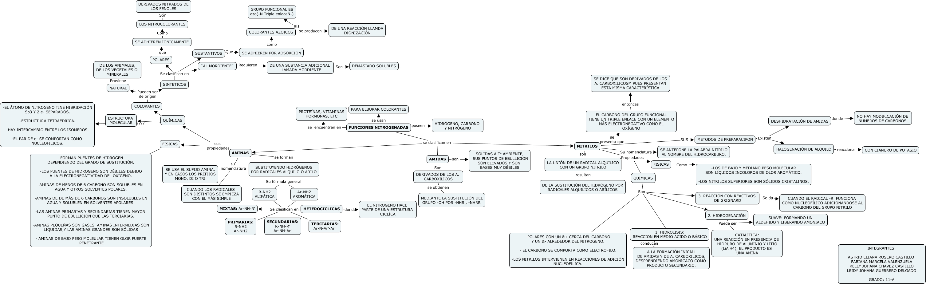 Este Cmap, tiene información relacionada con: FUNCIONES NITROGENADAS (2).cmap, FISICAS Como -LOS DE BAJO Y MEDIANO PESO MOLECULAR SON LÍQUIDOS INCOLOROS DE OLOR AROMÁTICO. -LOS NITRILOS SUPERIORES SON SÓLIDOS CRISTALINOS., SE ADHIEREN POR ADSORCIÓN como COLORANTES AZOICOS, R-NH2 ALIFÁTICA Se clasifican en MIXTAS: Ar-NH-R', HALOGENACIÓN DE ALQUILO reacciona CON CIANURO DE POTASIO, SINTETICOS Se clasifican en SUSTANTIVOS, Ar-NH2 AROMÁTICA Se clasifican en PRIMARIAS: R-NH2 Ar-NH2, AMINAS su nomenclatura CUANDO LOS RADICALES SON DISTINTOS SE EMPIEZA CON EL MÁS SIMPLE, Ar-NH2 AROMÁTICA Se clasifican en MIXTAS: Ar-NH-R', R-NH2 ALIFÁTICA Se clasifican en SECUNDARIAS: R-NH-R' Ar-NH-Ar', QUÍMICAS Como ESTRUCTURA MOLECULAR, Ar-NH2 AROMÁTICA Se clasifican en HETEROCICLICAS, 1. HIDROLISIS: REACCION EN MEDIO ACIDO O BÁSICO conducen A LA FORMACIÓN INICIAL DE AMIDAS Y DE A. CARBOXILICOS, DESPRENDIENDO AMONICACO COMO PRODUCTO SECUNDARIO., AMINAS sus propiedades QUÍMICAS, 2. HIDROGENACIÓN Puede ser SUAVE: FORMANDO UN ALDEHIDO Y LIBERANDO AMONIACO, SUSTITUYENDO HIDRÓGENOS POR RADICALES ALQUILO O ARILO Su fórmula general R-NH2 ALIFÁTICA, 2. HIDROGENACIÓN Puede ser CATALÍTICA: UNA REACCIÓN EN PRESENCIA DE HIDRURO DE ALUMINIO Y LITIO (LiAlH4), EL PRODUCTO ES UNA AMINA, QUÍMICAS Son 1. HIDROLISIS: REACCION EN MEDIO ACIDO O BÁSICO, SINTETICOS Se clasifican en POLARES, AMINAS se forman SUSTITUYENDO HIDRÓGENOS POR RADICALES ALQUILO O ARILO, QUÍMICAS Son -POLARES CON UN &+ CERCA DEL CARBONO Y UN &- ALREDEDOR DEL NITROGENO. - EL CARBONO SE COMPORTA COMO ELECTROFILO. -LOS NITRILOS INTERVIENEN EN REACCIONES DE ADICIÓN NUCLEOFÍLICA.
