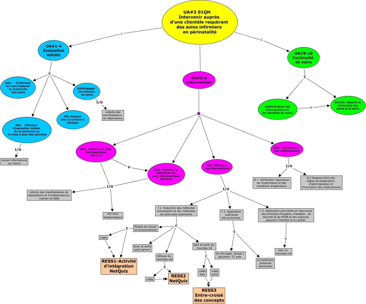 Cette carte de concepts créée avec IHMC CmapTools traite de: TIC 811 Nathalie Fournier UA3, OA6. Planifier la réalisation du plan thérapeutique infirmier. I/O collecte des manifestations de dépendance et d'indépendances maman et bébé, 7.1. Exécution des méthodes d’évaluation et des méthodes de soins avec autonomie C Phases du travail et accouchement, OA6. Planifier la réalisation du plan thérapeutique infirmier. I/O PTI PSTI hebdomadaire, OA8. Administrer des médicaments I/O 8.2 Respect strict des règles de préparation, d’administration et d’inscription des médicaments., OA#9-10 Continuité de soins C OA#10. Assurer la continuité des soins et le suivi., OA#9-10 Continuité de soins C OA#9 Évaluer les interventions et les résultats de soins., OA5. Élaborer le plan thérapeutique infirmier. p OA6. Planifier la réalisation du plan thérapeutique infirmier., OA5. Élaborer le plan thérapeutique infirmier. I/O PTI PSTI hebdomadaire, OA#5-8 Intervention C OA8. Administrer des médicaments, OA#9 Évaluer les interventions et les résultats de soins. P OA#10. Assurer la continuité des soins et le suivi., OA#1-4 Évaluation initiale C OA1. S’informer en vue d’assurer la continuité des soins, vidéo P RESS2 NetQuiz, vidéo P RESS1-Activité d'intégration NetQuiz, UA#3 01QH Intervenir auprès d’une clientèle requérant des soins infirmiers en périnatalité c OA#1-4 Évaluation initiale, OA4Dégager les besoins de soins I/O collecte des manifestations de dépendance, OA2 Effectuer l'évaluation initiale de la personne ou la mise à jour des données I/O recueil informations sur mémo, OA7. Effectuer les interventions I/O 7.1. Exécution des méthodes d’évaluation et des méthodes de soins avec autonomie, vidéo soins P RESS3 Entre-croisé des concepts, 7.1. Exécution des méthodes d’évaluation et des méthodes de soins avec autonomie C bain et soins du nouveau-né, 7.2. Application judicieuse des protocoles C surveillances protocole épimorphe