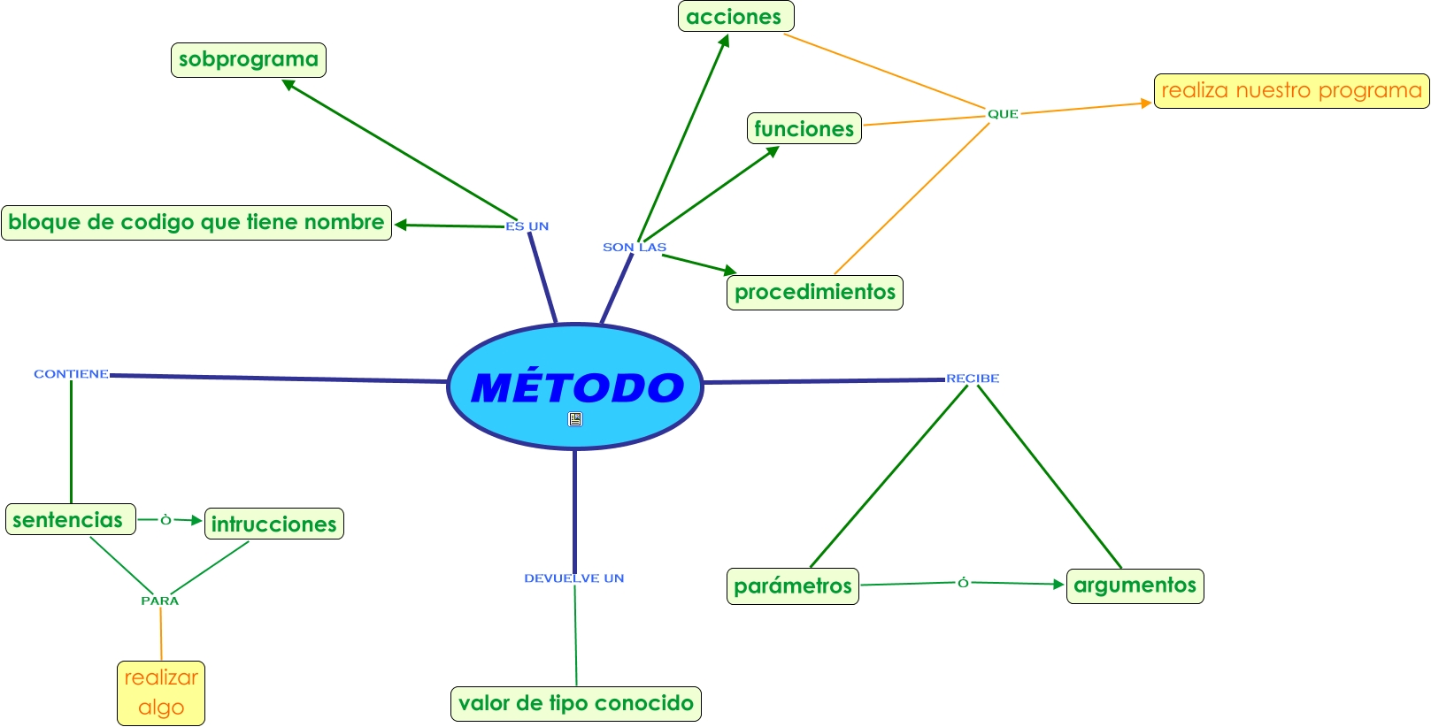 Este Cmap, tiene información relacionada con: Medodo, procedimientos que realiza nuestro programa, parámetros ó argumentos, intrucciones para realizar algo, MÉTODO es un sobprograma, funciones que realiza nuestro programa, MÉTODO recibe parámetros, MÉTODO devuelve un valor de tipo conocido, acciones que realiza nuestro programa, MÉTODO son las funciones, MÉTODO es un bloque de codigo que tiene nombre, sentencias ò intrucciones, sentencias para realizar algo, MÉTODO son las procedimientos, MÉTODO recibe argumentos, MÉTODO contiene sentencias, MÉTODO son las acciones