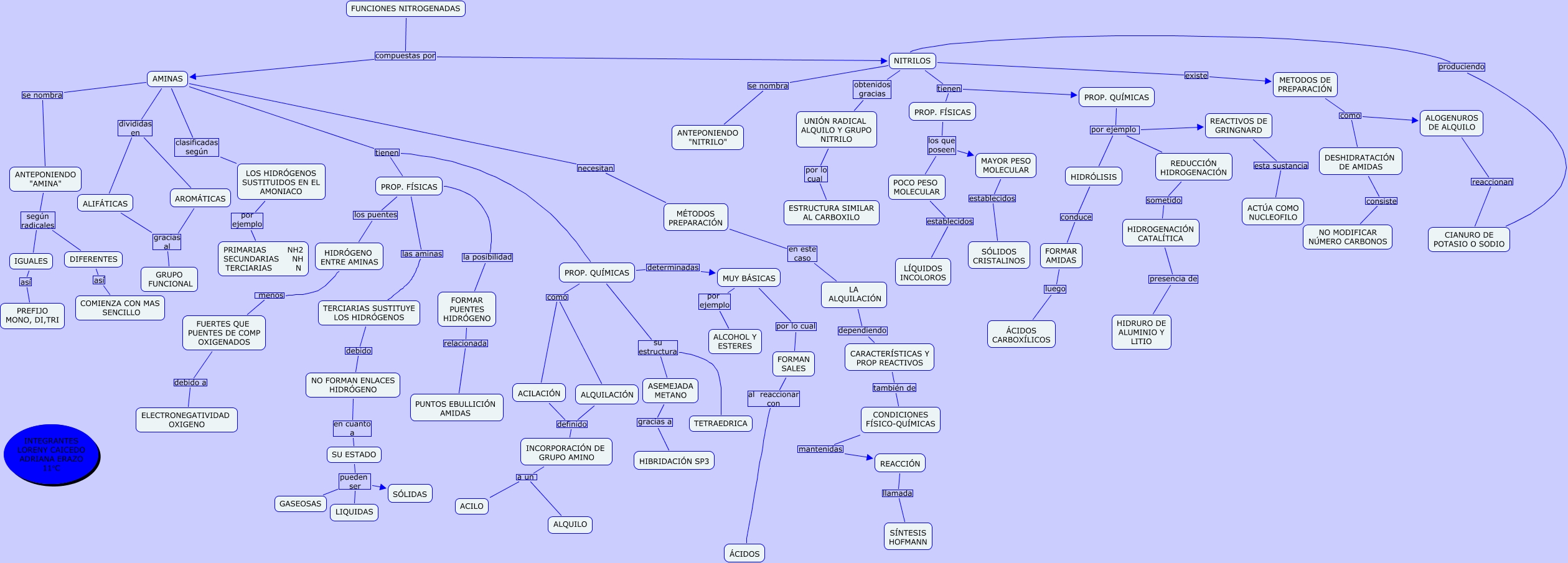 Este Cmap, tiene información relacionada con: FUNCIONES NITROGENADAS loreny y adriana, FUNCIONES NITROGENADAS compuestas por NITRILOS, DESHIDRATACIÓN DE AMIDAS consiste NO MODIFICAR NÚMERO CARBONOS, MUY BÁSICAS por ejemplo ALCOHOL Y ESTERES, NITRILOS obtenidos gracias UNIÓN RADICAL ALQUILO Y GRUPO NITRILO, NO FORMAN ENLACES HIDRÓGENO en cuanto a SU ESTADO, SU ESTADO pueden ser LIQUIDAS, PROP. FÍSICAS los que poseen POCO PESO MOLECULAR, DIFERENTES así COMIENZA CON MAS SENCILLO, INCORPORACIÓN DE GRUPO AMINO a un ACILO, FORMAR AMIDAS luego ÁCIDOS CARBOXÍLICOS, AMINAS clasificadas según LOS HIDRÓGENOS SUSTITUIDOS EN EL AMONIACO, PROP. QUÍMICAS por ejemplo REACTIVOS DE GRINGNARD, SU ESTADO pueden ser SÓLIDAS, TERCIARIAS SUSTITUYE LOS HIDRÓGENOS debido NO FORMAN ENLACES HIDRÓGENO, PROP. QUÍMICAS como ACILACIÓN, MÉTODOS PREPARACIÓN en este caso LA ALQUILACIÓN, PROP. QUÍMICAS determinadas MUY BÁSICAS, SU ESTADO pueden ser GASEOSAS, FUNCIONES NITROGENADAS compuestas por AMINAS, FORMAN SALES al reaccionar con ÁCIDOS