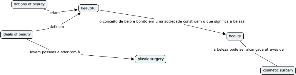 Esse mapa conceitual, produzido no IHMC CmapTools, tem a informação relacionada a: NataliaAbrahao.cmap, beauty a beleza pode ser alcançada através de cosmetic surgery, beautiful o conceito de belo e bonito em uma sociedade constroem o que significa a beleza beauty, notions of beauty criam beautiful, ideals of beauty definem beautiful, ideals of beauty levam pessoas a aderirem à plastic surgery