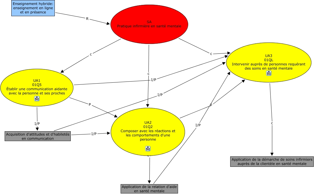 Cette carte de concepts créée avec IHMC CmapTools traite de: SA, Enseignement hybride: enseignement en ligne et en présence R SA Pratique infirmière en santé mentale, UA1 01Q5 Établir une communication aidante avec la personne et ses proches I/P Acquisition d'attitudes et d'habiletés en communication, SA Pratique infirmière en santé mentale c UA3 01QL Intervenir auprès de personnes requérant des soins en santé mentale, UA2 01Q2 Composer avec les réactions et les comportements d'une personne p UA3 01QL Intervenir auprès de personnes requérant des soins en santé mentale, UA1 01Q5 Établir une communication aidante avec la personne et ses proches I/P UA3 01QL Intervenir auprès de personnes requérant des soins en santé mentale, UA3 01QL Intervenir auprès de personnes requérant des soins en santé mentale c Application de la démarche de soins infirmiers auprès de la clientèle en santé mentale, Acquisition d'attitudes et d'habiletés en communication I/P UA2 01Q2 Composer avec les réactions et les comportements d'une personne, UA1 01Q5 Établir une communication aidante avec la personne et ses proches P UA2 01Q2 Composer avec les réactions et les comportements d'une personne, Application de la relation d'aide en santé mentale I/P UA3 01QL Intervenir auprès de personnes requérant des soins en santé mentale, SA Pratique infirmière en santé mentale c UA2 01Q2 Composer avec les réactions et les comportements d'une personne, UA2 01Q2 Composer avec les réactions et les comportements d'une personne I/P Application de la relation d'aide en santé mentale, SA Pratique infirmière en santé mentale c UA1 01Q5 Établir une communication aidante avec la personne et ses proches, Acquisition d'attitudes et d'habiletés en communication I/P UA3 01QL Intervenir auprès de personnes requérant des soins en santé mentale