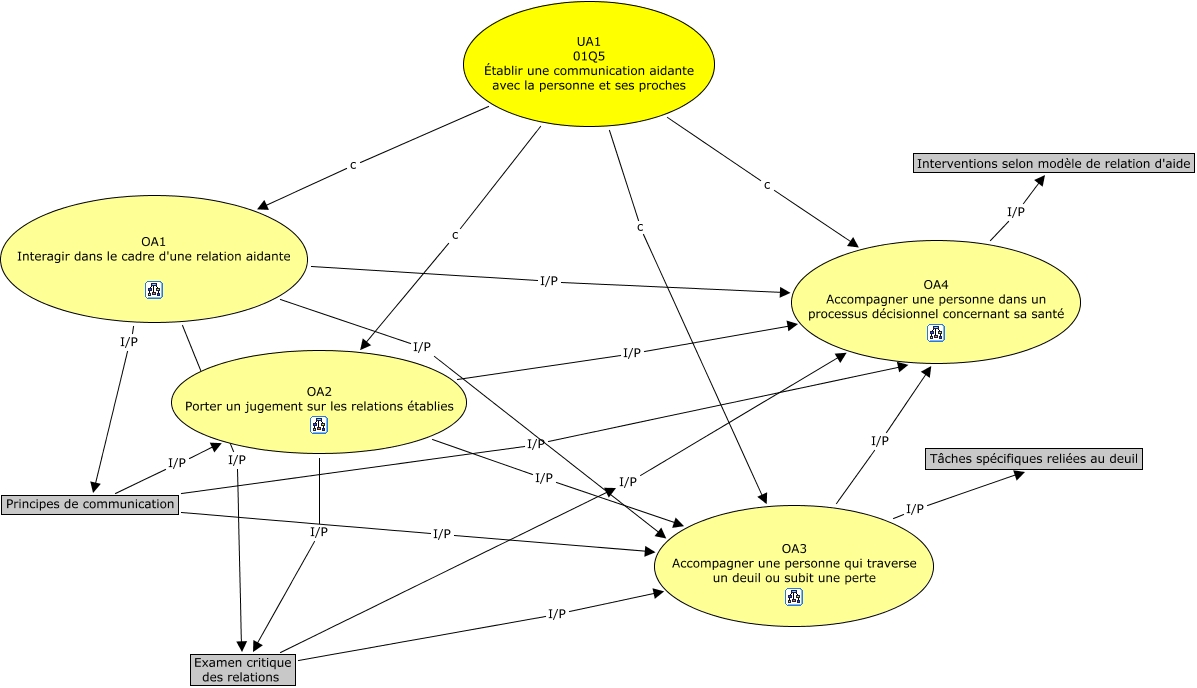 Cette carte de concepts créée avec IHMC CmapTools traite de: UA1, Examen critique des relations I/P OA4 Accompagner une personne dans un processus décisionnel concernant sa santé, UA1 01Q5 Établir une communication aidante avec la personne et ses proches c OA2 Porter un jugement sur les relations établies, OA3 Accompagner une personne qui traverse un deuil ou subit une perte I/P Tâches spécifiques reliées au deuil, OA1 Interagir dans le cadre d'une relation aidante I/P OA3 Accompagner une personne qui traverse un deuil ou subit une perte, OA2 Porter un jugement sur les relations établies I/P Examen critique des relations, OA4 Accompagner une personne dans un processus décisionnel concernant sa santé I/P Interventions selon modèle de relation d'aide, OA2 Porter un jugement sur les relations établies I/P OA3 Accompagner une personne qui traverse un deuil ou subit une perte, Principes de communication I/P OA3 Accompagner une personne qui traverse un deuil ou subit une perte, Principes de communication I/P OA2 Porter un jugement sur les relations établies, UA1 01Q5 Établir une communication aidante avec la personne et ses proches c OA3 Accompagner une personne qui traverse un deuil ou subit une perte, OA1 Interagir dans le cadre d'une relation aidante I/P OA4 Accompagner une personne dans un processus décisionnel concernant sa santé, UA1 01Q5 Établir une communication aidante avec la personne et ses proches c OA4 Accompagner une personne dans un processus décisionnel concernant sa santé, Principes de communication I/P OA4 Accompagner une personne dans un processus décisionnel concernant sa santé, OA1 Interagir dans le cadre d'une relation aidante I/P Examen critique des relations, Examen critique des relations I/P OA3 Accompagner une personne qui traverse un deuil ou subit une perte, UA1 01Q5 Établir une communication aidante avec la personne et ses proches c OA1 Interagir dans le cadre d'une relation aidante, OA2 Porter un jugement sur les relations établies I/P OA4 Accompagner une personne dans un processus décisionnel concernant sa santé, OA1 Interagir dans le cadre d'une relation aidante I/P Principes de communication, OA3 Accompagner une personne qui traverse un deuil ou subit une perte I/P OA4 Accompagner une personne dans un processus décisionnel concernant sa santé