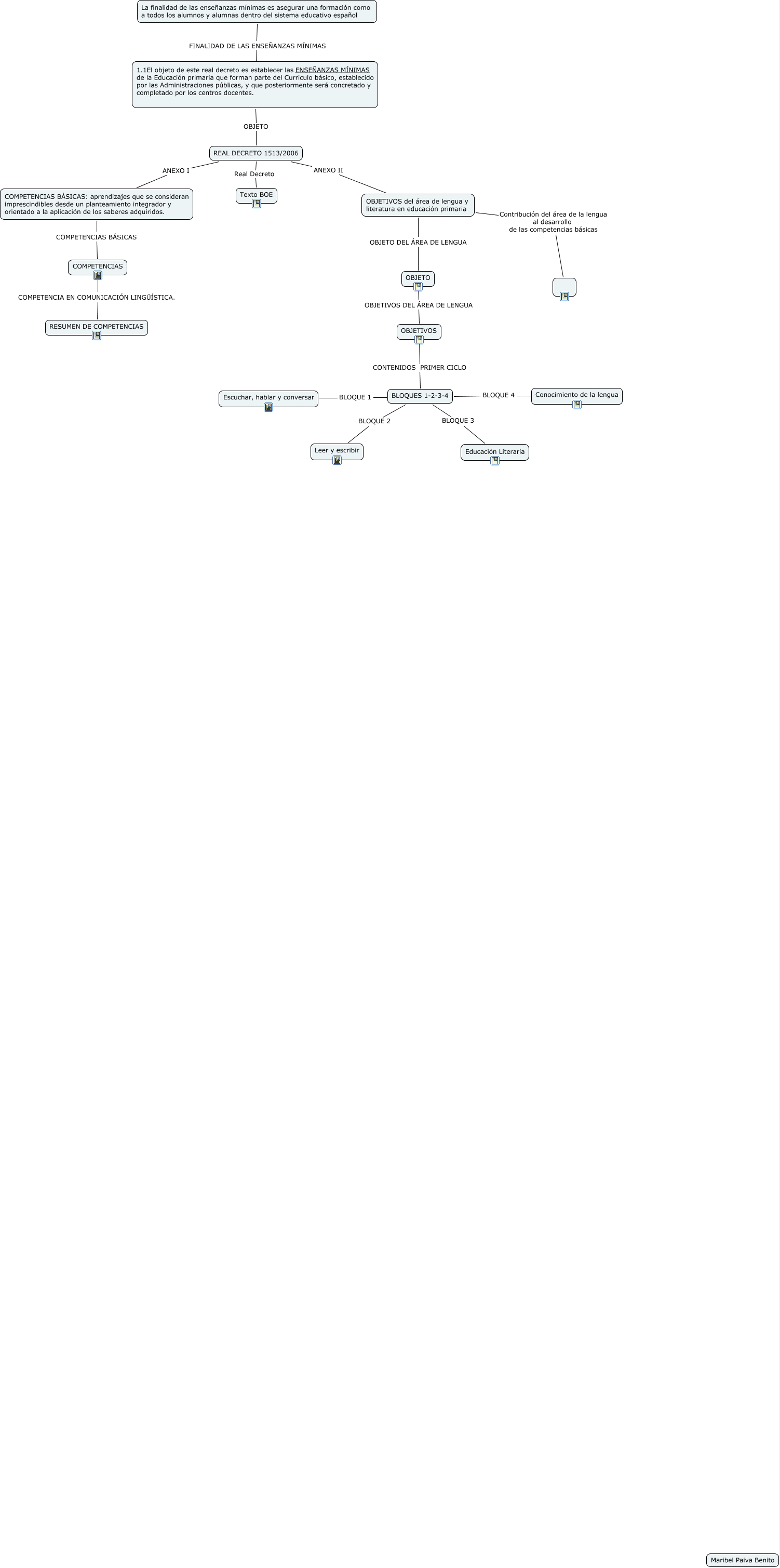 Este Cmap, tiene información relacionada con: REAL DECRETO 15132006, BLOQUES 1-2-3-4 BLOQUE 2 Leer y escribir, COMPETENCIAS COMPETENCIA EN COMUNICACIÓN LINGÜÍSTICA. RESUMEN DE COMPETENCIAS, 1.1El objeto de este real decreto es establecer las ENSEÑANZAS MÍNIMAS de la Educación primaria que forman parte del Curriculo básico, establecido por las Administraciones públicas, y que posteriormente será concretado y completado por los centros docentes. FINALIDAD DE LAS ENSEÑANZAS MÍNIMAS La finalidad de las enseñanzas mínimas es asegurar una formación como a todos los alumnos y alumnas dentro del sistema educativo español, REAL DECRETO 1513/2006 Real Decreto Texto BOE, BLOQUES 1-2-3-4 BLOQUE 3 Educación Literaria, OBJETIVOS del área de lengua y literatura en educación primaria Contribución del área de la lengua al desarrollo de las competencias básicas, COMPETENCIAS BÁSICAS: aprendizajes que se consideran imprescindibles desde un planteamiento integrador y orientado a la aplicación de los saberes adquiridos. COMPETENCIAS BÁSICAS COMPETENCIAS, REAL DECRETO 1513/2006 ANEXO I COMPETENCIAS BÁSICAS: aprendizajes que se consideran imprescindibles desde un planteamiento integrador y orientado a la aplicación de los saberes adquiridos., OBJETIVOS del área de lengua y literatura en educación primaria OBJETO DEL ÁREA DE LENGUA OBJETO, 1.1El objeto de este real decreto es establecer las ENSEÑANZAS MÍNIMAS de la Educación primaria que forman parte del Curriculo básico, establecido por las Administraciones públicas, y que posteriormente será concretado y completado por los centros docentes. OBJETO REAL DECRETO 1513/2006, OBJETIVOS CONTENIDOS PRIMER CICLO BLOQUES 1-2-3-4, BLOQUES 1-2-3-4 BLOQUE 1 Escuchar, hablar y conversar, OBJETO OBJETIVOS DEL ÁREA DE LENGUA OBJETIVOS, BLOQUES 1-2-3-4 BLOQUE 4 Conocimiento de la lengua, REAL DECRETO 1513/2006 ANEXO II OBJETIVOS del área de lengua y literatura en educación primaria