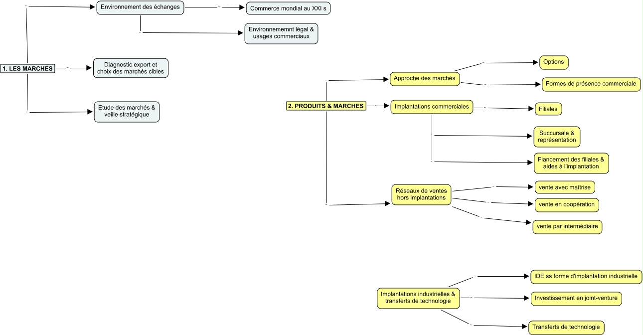Cette carte de concepts créée avec IHMC CmapTools traite de: Marchés, 2. PRODUITS & MARCHES . Implantations commerciales, 1. LES MARCHES . Diagnostic export et choix des marchés cibles, Implantations industrielles & transferts de technologie . Transferts de technologie, Réseaux de ventes hors implantations . vente avec maîtrise, Implantations industrielles & transferts de technologie . IDE ss forme d'implantation industrielle, Environnement des échanges . Environnememnt légal & usages commerciaux, Réseaux de ventes hors implantations . vente par intermédiaire, 2. PRODUITS & MARCHES . Réseaux de ventes hors implantations, Implantations industrielles & transferts de technologie . Investissement en joint-venture, Implantations commerciales . Succursale & représentation, 1. LES MARCHES . Etude des marchés & veille stratégique, Approche des marchés . Options, Environnement des échanges . Commerce mondial au XXI s, 1. LES MARCHES . Environnement des échanges, Réseaux de ventes hors implantations . vente en coopération, Implantations commerciales . Filiales, Implantations commerciales . Fiancement des filiales & aides à l'implantation, Approche des marchés . Formes de présence commerciale, 2. PRODUITS & MARCHES . Approche des marchés