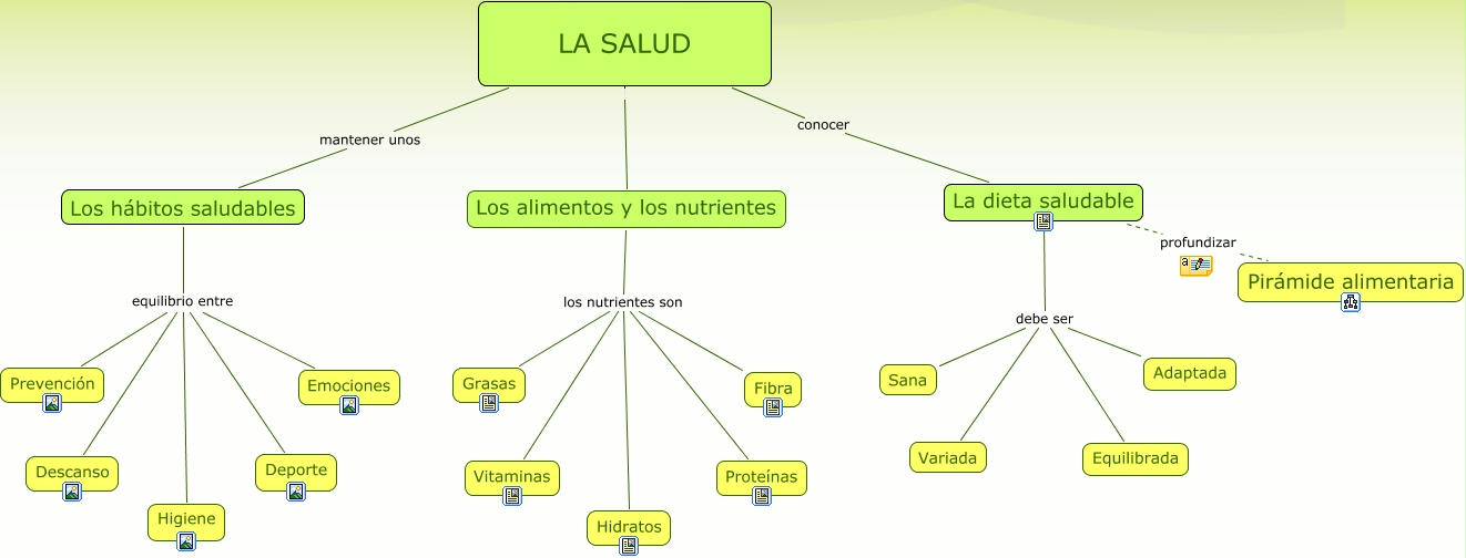 Este Cmap, tiene información relacionada con: mapa conceptual salud, Los hábitos saludables equilibrio entre Prevención, LA SALUD Los alimentos y los nutrientes, Los alimentos y los nutrientes los nutrientes son Vitaminas, Los hábitos saludables equilibrio entre Emociones, La dieta saludable debe ser Adaptada, Los hábitos saludables equilibrio entre Deporte, Los alimentos y los nutrientes los nutrientes son Hidratos, Los alimentos y los nutrientes los nutrientes son Proteínas, Los hábitos saludables equilibrio entre Higiene, Los hábitos saludables equilibrio entre Descanso, Los alimentos y los nutrientes los nutrientes son Grasas, La dieta saludable profundizar Pirámide alimentaria, Los alimentos y los nutrientes los nutrientes son Fibra, La dieta saludable debe ser Equilibrada, La dieta saludable debe ser Variada, La dieta saludable debe ser Sana, LA SALUD conocer La dieta saludable, LA SALUD mantener unos Los hábitos saludables