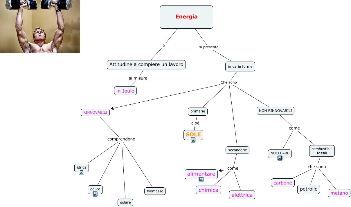 Questa Cmap, creata con IHMC CmapTools, contiene informazioni relative a: energia, NON RINNOVABILI come combustibili fossili, NON RINNOVABILI come NUCLEARE, RINNOVABILI comprendono solare, Attitudine a compiere un lavoro si misura in Joule, RINNOVABILI comprendono biomasse, RINNOVABILI comprendono eolica, combustibili fossili che sono petrolio, in varie forme Che sono RINNOVABILI, secondarie come elettrica, Energia si presenta in varie forme, secondarie come alimentare, Energia è Attitudine a compiere un lavoro, combustibili fossili che sono carbone, combustibili fossili che sono metano, in varie forme Che sono NON RINNOVABILI, in varie forme Che sono secondarie, secondarie come chimica, RINNOVABILI comprendono idrica, in varie forme Che sono primarie, primarie cioè SOLE