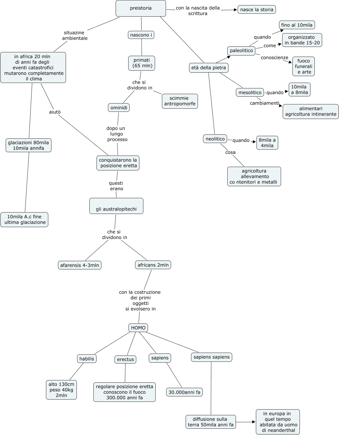 Questa Cmap, creata con IHMC CmapTools, contiene informazioni relative a: preistoria (baroni l.), mesolitico quando 10mila a 8mila, glaciazioni 80mila 10mila annifa ???? 10mila A.c fine ultima glaciazione, età della pietra ???? paleolitico, primati (65 mln) che si dividono in scimmie antropomorfe, HOMO ???? habilis, età della pietra ???? mesolitico, paleolitico conoscienze fuoco funerali e arte, mesolitico cambiamenti alimentari agricoltura intinerante, sapiens sapiens ???? diffusione sulla terra 50mila anni fa, età della pietra ???? neolitico, paleolitico come organizzato in bande 15-20, habilis ???? alto 130cm peso 40kg 2mln, erectus ???? regolare posizione eretta conoscono il fuoco 300.000 anni fa, sapiens ???? 30.000anni fa, in africa 20 mln di anni fa degli eventi catastrofici mutarono completamente il clima aiutò conquistarono la posizione eretta, gli australopitechi che si dividono in afarensis 4-3mln, africans 2mln con la costruzione dei primi oggetti si evolsero in HOMO, preistoria situazine ambientale in africa 20 mln di anni fa degli eventi catastrofici mutarono completamente il clima, neolitico quando 8mila a 4mila, primati (65 mln) che si dividono in ominidi