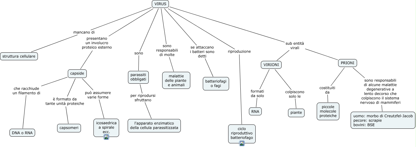 Questa Cmap, creata con IHMC CmapTools, contiene informazioni relative a: 04.5 I Virus, VIRUS mancano di struttura cellulare, VIRIONI formati da solo RNA, parassiti obbligati per riprodursi sfruttano l'apparato enzimatico della cellula parassitizzata, VIRUS sub entità virali PRIONI, VIRUS sub entità virali VIRIONI, capside può assumere varie forme icosaedrica a spirale ecc., VIRUS riproduzione ciclo riproduttivo batteriofago, VIRUS se attaccano i batteri sono detti batteriofagi o fagi, VIRUS sono responsabili di molte malattie delle piante e animali, PRIONI sono responsabili di alcune malattie degenerative a lento decorso che colpiscono il sistema nervoso di mammiferi uomo: morbo di Creutzfel-Jacob pecore: scrapie bovini: BSE, VIRUS presentano un involucro proteico esterno capside, capside è formato da tante unità proteiche capsomeri, VIRUS sono parassiti obbligati, PRIONI costituiti da piccole molecole proteiche, VIRIONI colpiscono solo le piante, capside che racchiude un filamento di DNA o RNA