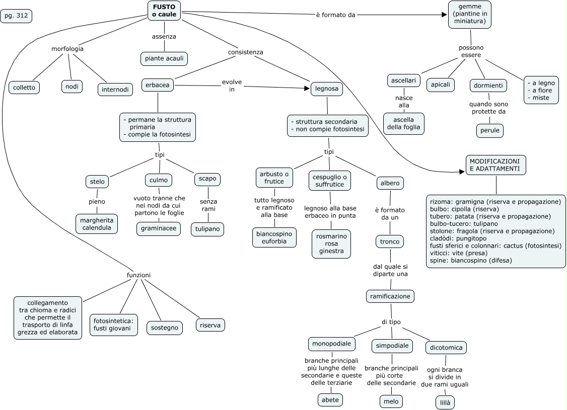 Questa Cmap, creata con IHMC CmapTools, contiene informazioni relative a: 14.0 Il Fusto, MODIFICAZIONI E ADATTAMENTI rizoma: gramigna (riserva e propagazione) bulbo: cipolla (riserva) tubero: patata (riserva e propagazione) bulbo-tucero: tulipano stolone: fragola (riserva e propagazione) cladòdi: pungitopo fusti sferici e colonnari: cactus (fotosintesi) viticci: vite (presa) spine: biancospino (difesa), - struttura secondaria - non compie fotosintesi tipi arbusto o frutice, - permane la struttura primaria - compie la fotosintesi tipi stelo, albero è formato da un tronco, ramificazione di tipo dicotomica, ramificazione di tipo simpodiale, ascellari nasce alla ascella della foglia, legnosa - struttura secondaria - non compie fotosintesi, - struttura secondaria - non compie fotosintesi tipi cespuglio o suffrutice, gemme (piantine in miniatura) possono essere - a legno - a fiore - miste, FUSTO o caule funzioni fotosintetica: fusti giovani, FUSTO o caule consistenza erbacea, FUSTO o caule morfologia nodi, FUSTO o caule consistenza legnosa, simpodiale branche principali più corte delle secondarie melo, dormienti quando sono protette da perule, gemme (piantine in miniatura) possono essere dormienti, FUSTO o caule assenza piante acauli, arbusto o frutice tutto legnoso e ramificato alla base biancospino euforbia, - permane la struttura primaria - compie la fotosintesi tipi scapo