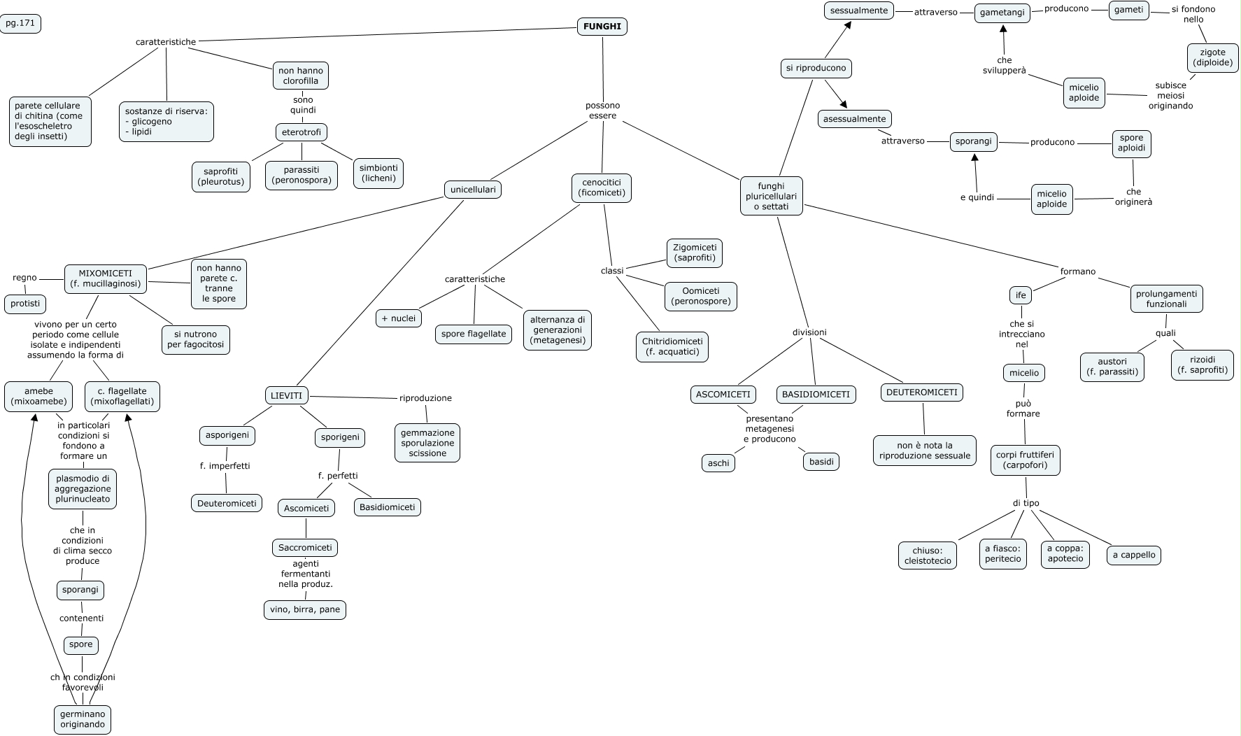 Questa Cmap, creata con IHMC CmapTools, contiene informazioni relative a: 08 funghi, MIXOMICETI (f. mucillaginosi) si nutrono per fagocitosi, FUNGHI caratteristiche sostanze di riserva: - glicogeno - lipidi, LIEVITI sporigeni, MIXOMICETI (f. mucillaginosi) vivono per un certo periodo come cellule isolate e indipendenti assumendo la forma di c. flagellate (mixoflagellati), LIEVITI asporigeni, prolungamenti funzionali quali rizoidi (f. saprofiti), DEUTEROMICETI divisioni BASIDIOMICETI, FUNGHI caratteristiche parete cellulare di chitina (come l'esoscheletro degli insetti), corpi fruttiferi (carpofori) di tipo chiuso: cleistotecio, ASCOMICETI presentano metagenesi e producono aschi, ASCOMICETI presentano metagenesi e producono basidi, FUNGHI possono essere unicellulari, eterotrofi saprofiti (pleurotus), unicellulari MIXOMICETI (f. mucillaginosi), c. flagellate (mixoflagellati) in particolari condizioni si fondono a formare un plasmodio di aggregazione plurinucleato, FUNGHI possono essere funghi pluricellulari o settati, MIXOMICETI (f. mucillaginosi) vivono per un certo periodo come cellule isolate e indipendenti assumendo la forma di amebe (mixoamebe), sporangi contenenti spore, Oomiceti (peronospore) classi Chitridiomiceti (f. acquatici), funghi pluricellulari o settati divisioni ASCOMICETI